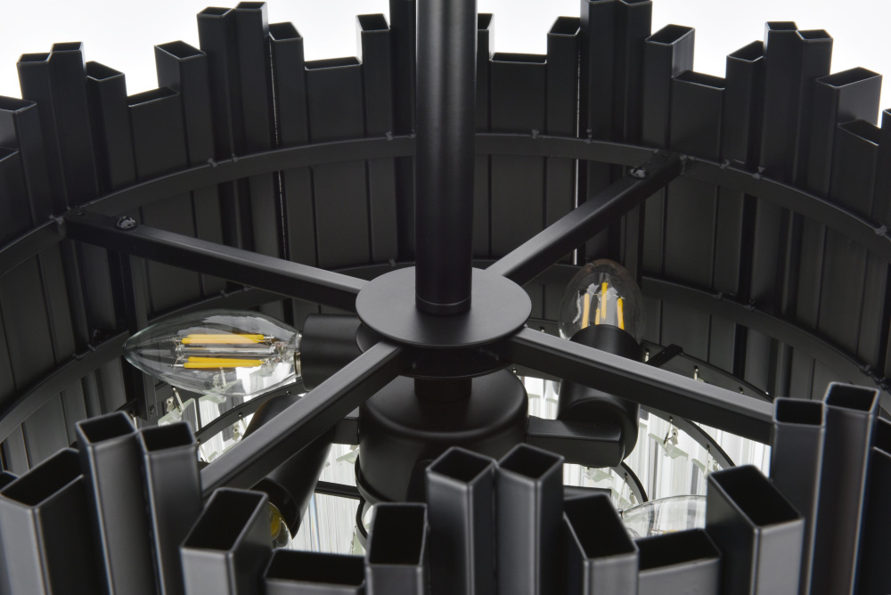 The black finish adds depth and drama, accentuating the geometric lines and creating a bold focal point.