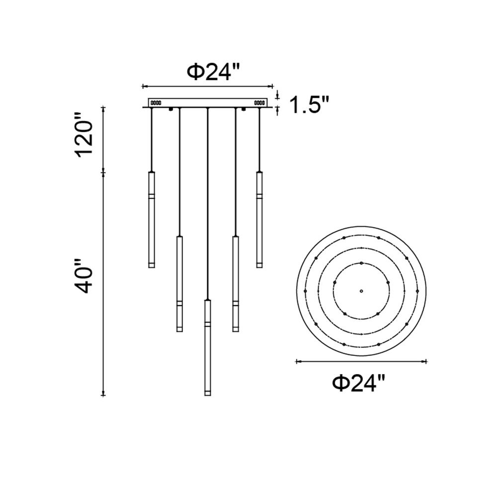 Elevate your space with the Flute 24'' 16-Light Integrated LED Chandelier, a striking modern fixture with minimalist appeal. Its 24-inch black canopy anchors 16 slim LED lights that cascade at adjustable heights to create a custom arrangement tailored to your room's proportions. Perfect for use in modern living rooms, dining areas, or even bedrooms with high ceilings, this fixture delivers a sleek aesthetic while providing efficient and ambient illumination. Finish: Black Canopy Diameter: 24" Light Source: 16 Integrated LED Lights Certification: BACL Certified Warranty: 3-Year Manufacturer Warranty