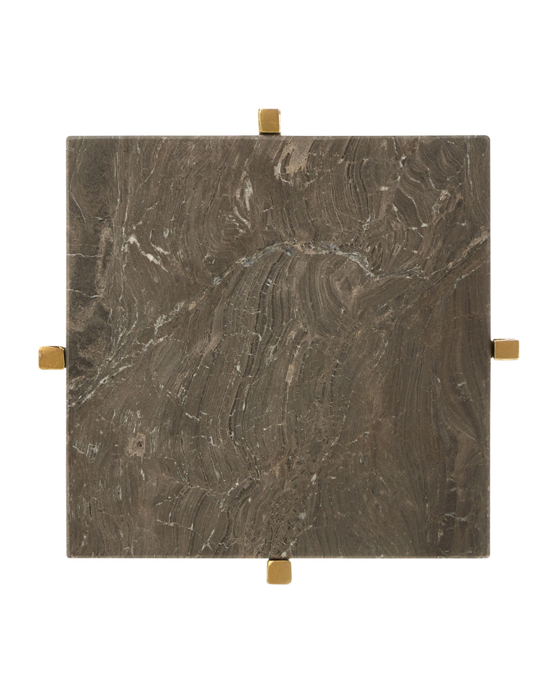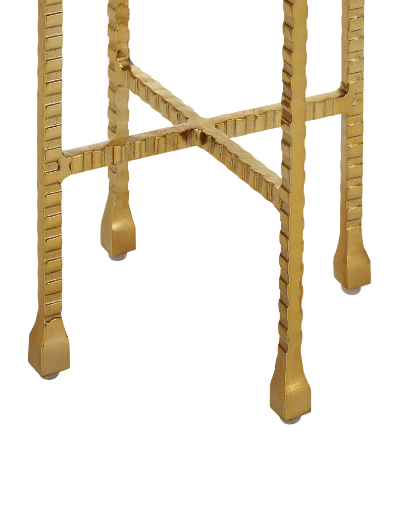 Gold iron and cappuccino-colored stone come together to create the Flying Marble Gold Drinks Table. The X-shaped stretchers and top support are as toothy as the legs to bring this gold drinks table an industrial vibe, but it is also a shoe-in for a contemporary aesthetic. Design details of note are the way the feet swell and the clever way the legs culminate to embrace the brown marble top.
