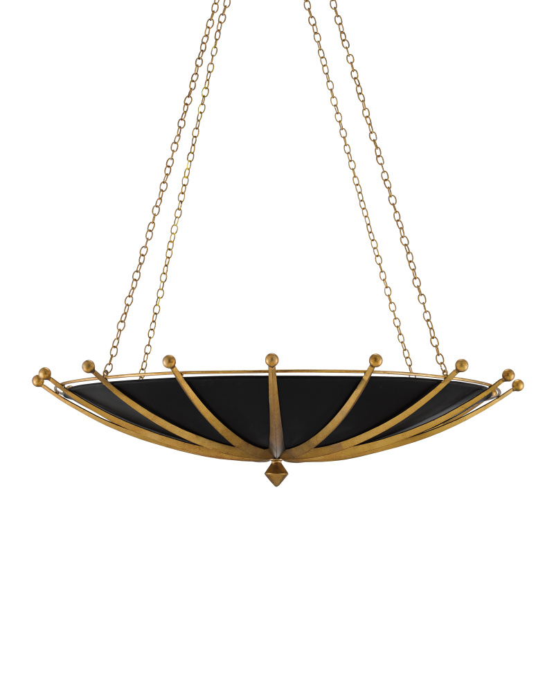 Hollywood starlets of the studio era were expected to lead glamourous lives. How fitting our Fontaine Chandelier would have been for the bevy of beauties who decked themselves out in fur and outfitted their mansions with opulence! The lustrous mix of antique gold leaf, contemporary gold leaf and satin black finishes enhances the sumptuousness of this chandelier, as does the sophistication of its design.