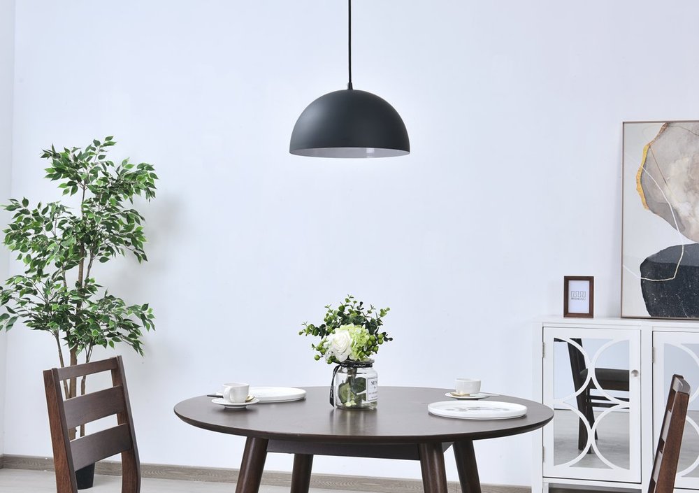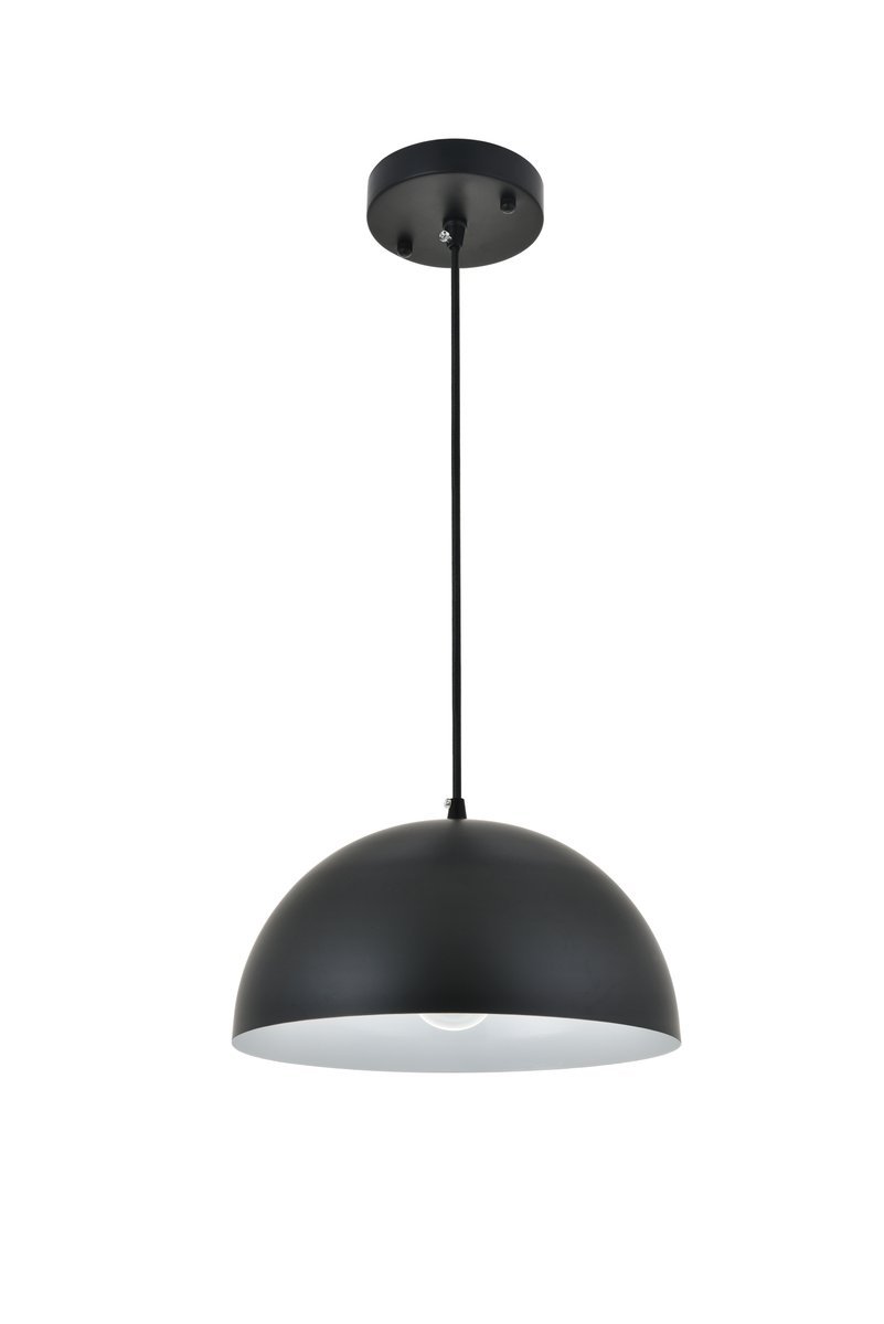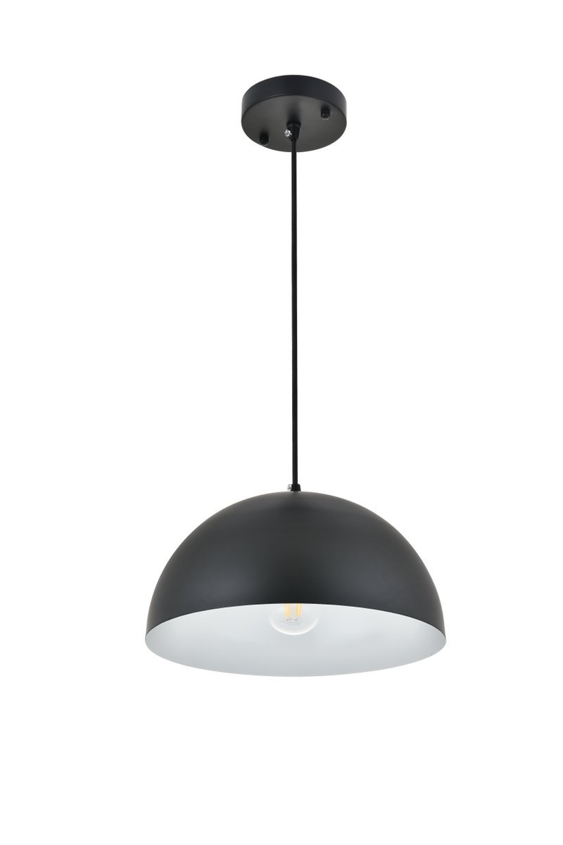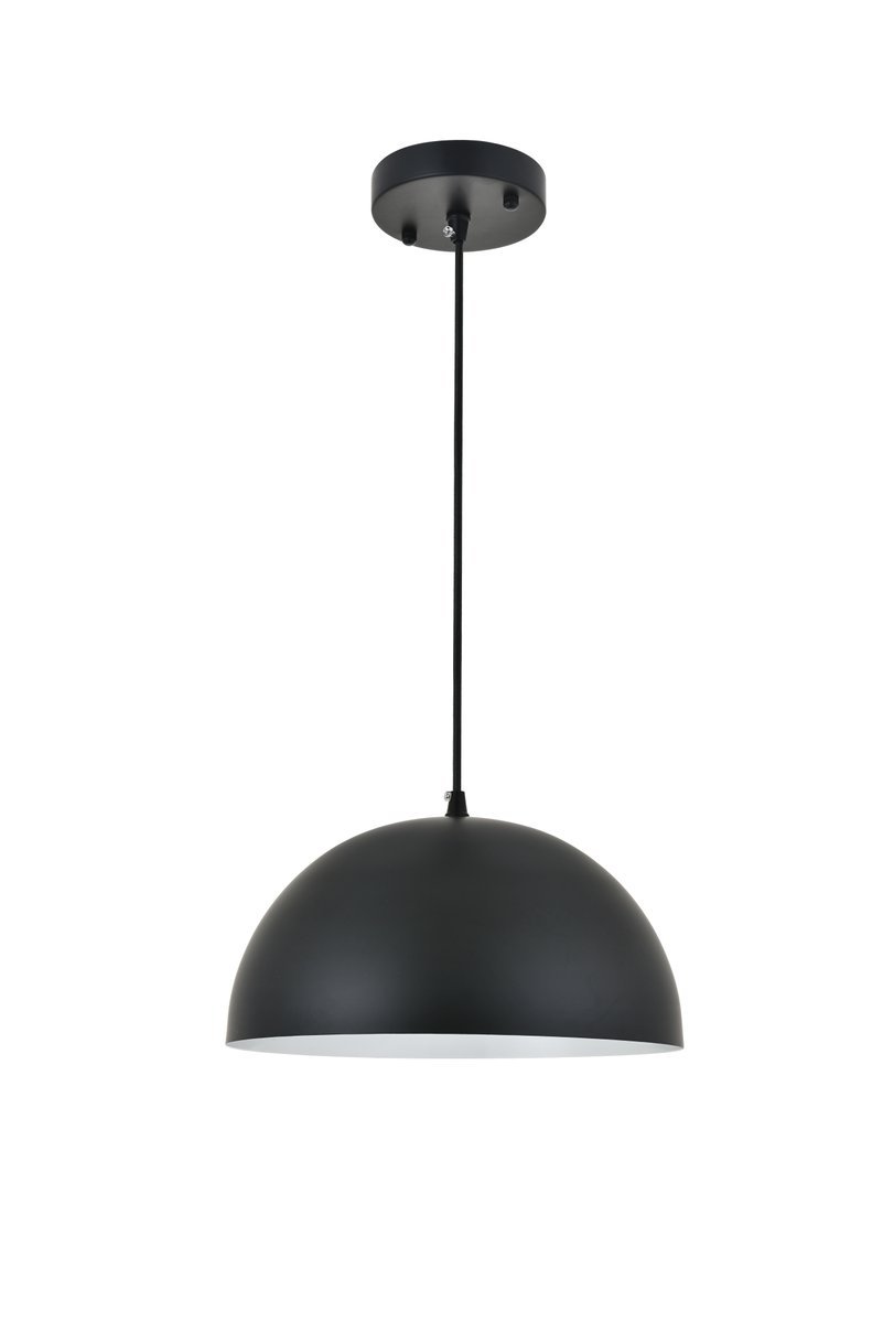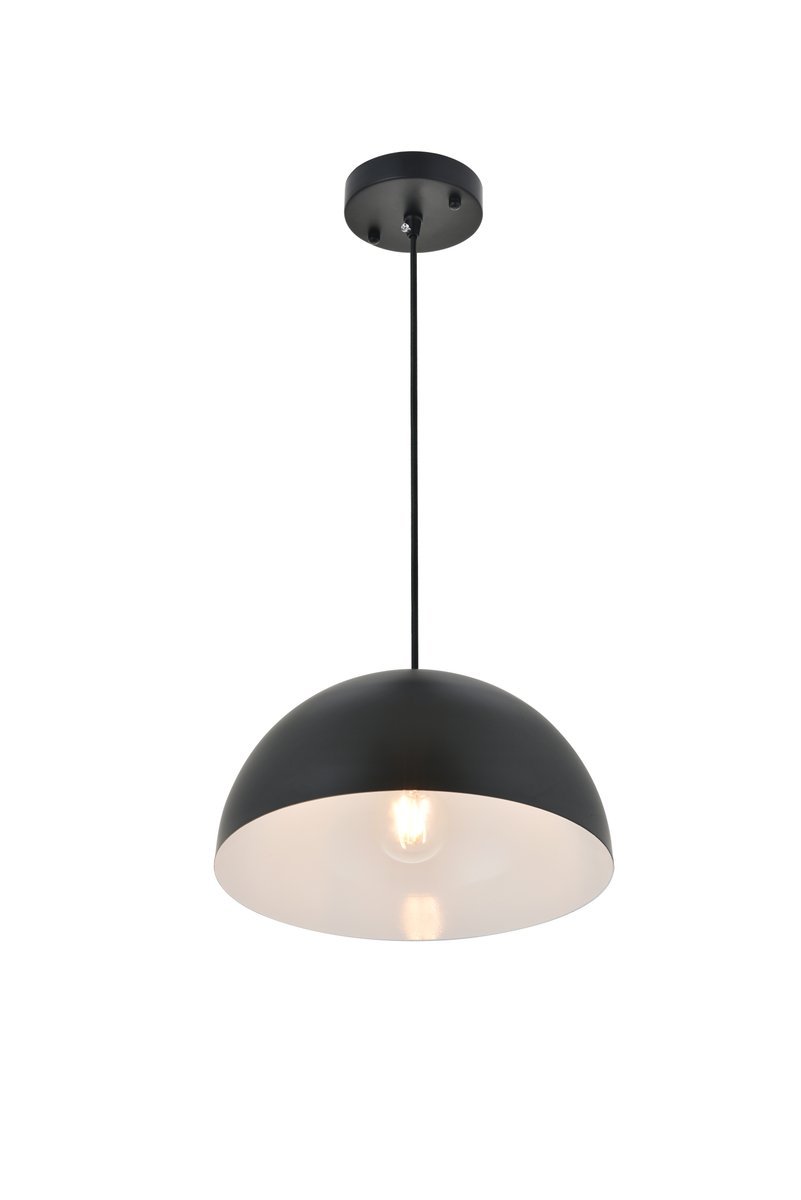 Black finish pendant light with dome shaped shade