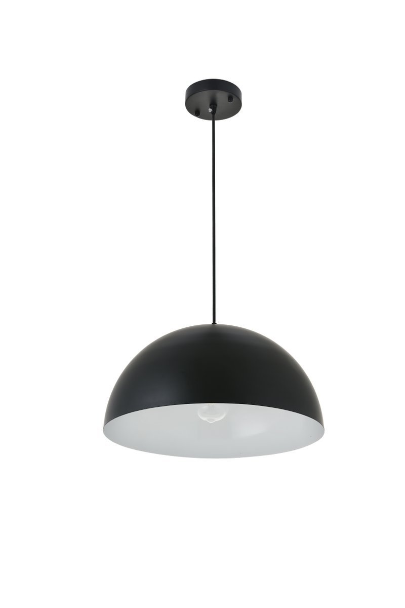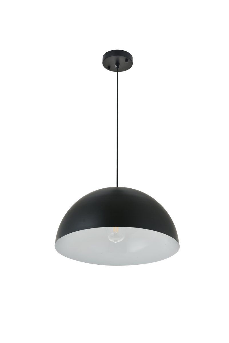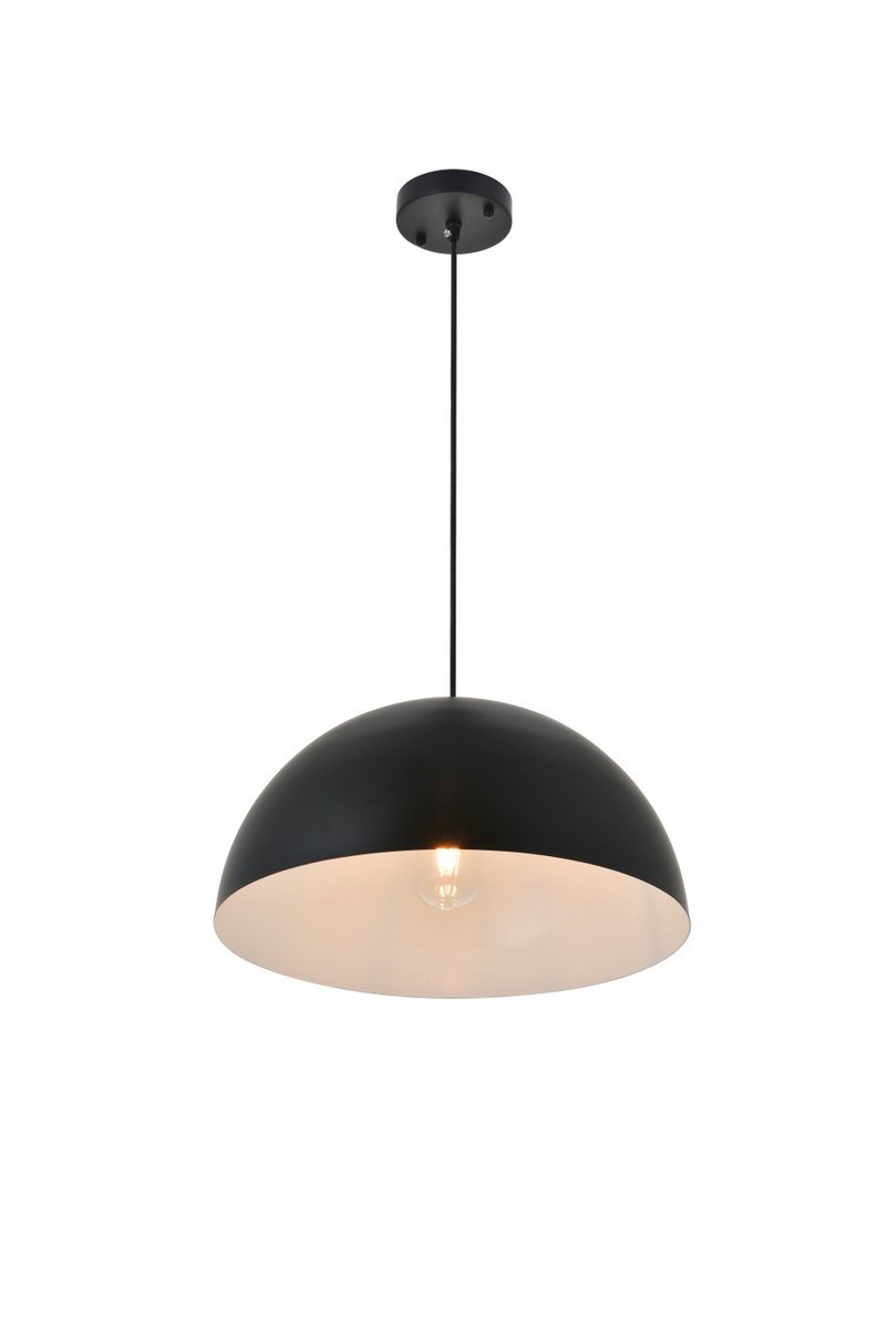 The Forte collection pendant lamp will surely create a modern and bold center point for any room. The hemispherical shade with a black finish exterior and white finish interior creates a dauntless personality that will illuminate any darkness with its reliable light. Without fail, Forte will excel at brightening your home, whether it's at your entryway, living room, or dining room.