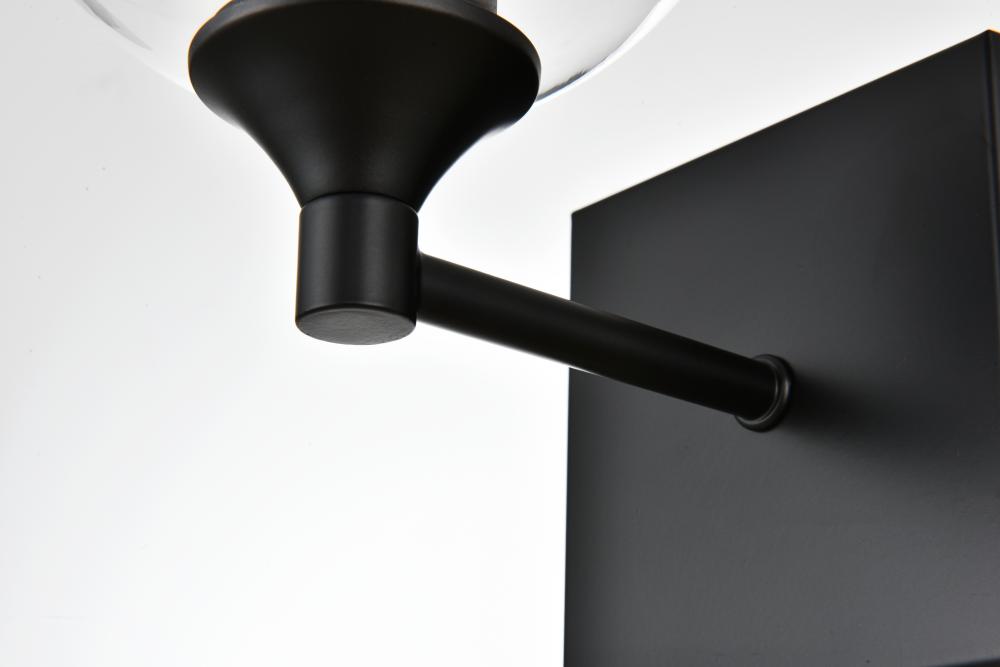 Defined by a sleek metal arm extends to suspend the clear pear-shaped glass shade. A contemporary stunner, it shows off the straight line details from the backplate and the streamline thick metal arm. Compatible with dimmers, so you'll have the right amount of light in any given time of the day. Completely versatile, you can place this wall light as an uplight or downlight. Rated for use in damp locations, this will work perfectly over a vanity in your bathroom.