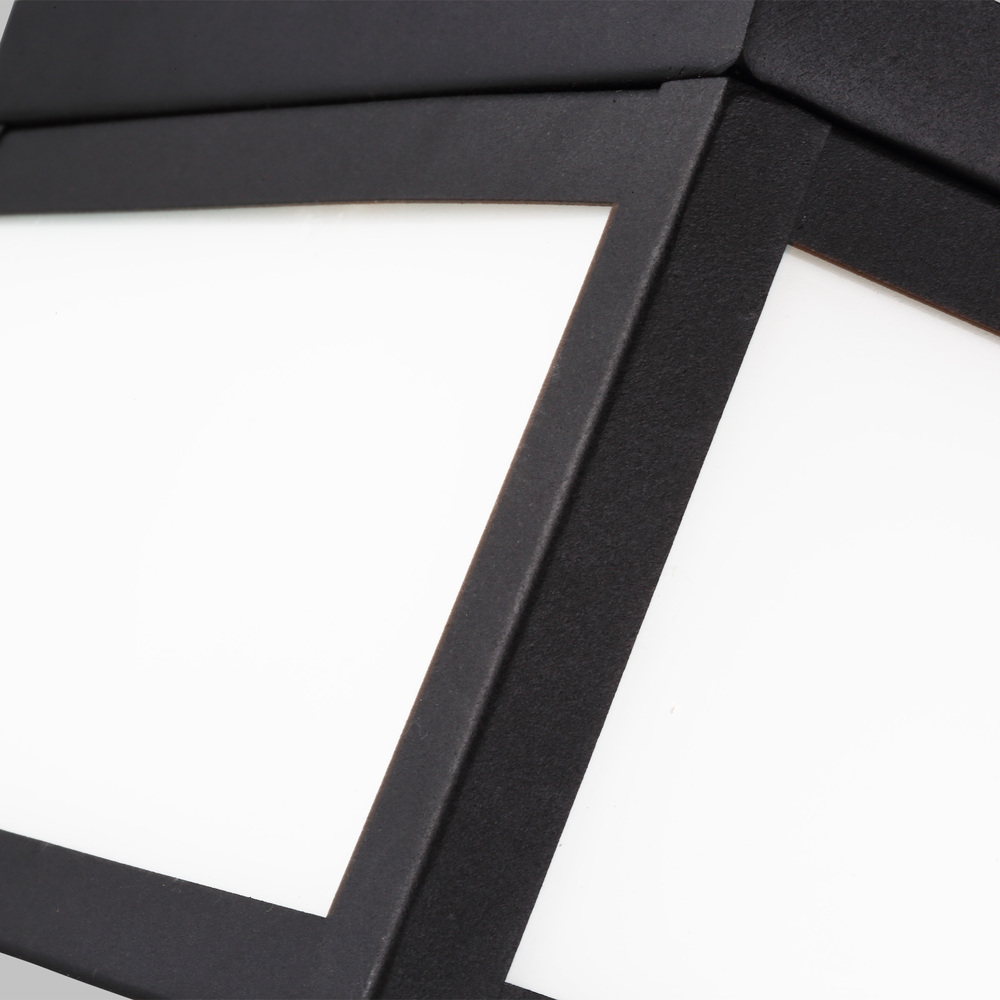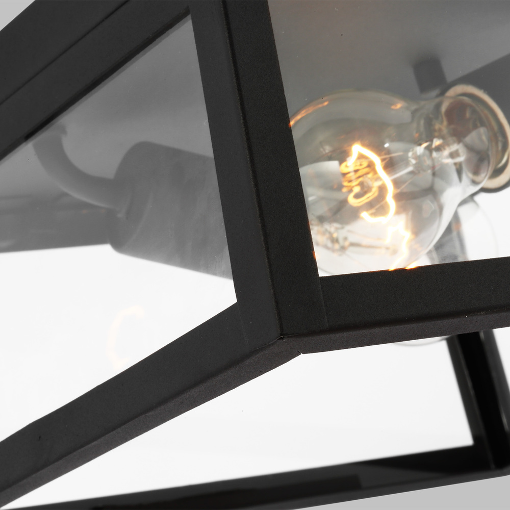 The Founders two light outdoor ceiling fixture in black creates a warm and inviting welcome presentation for your home's exterior.