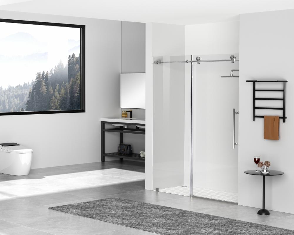 Transform your bathroom into a luxurious oasis with our stunning shower doors! Our doors are designed to offer both functionality and style, making your shower experience more enjoyable and comfortable. Crafted from high quality materials, our shower doors are not only durable but also easy to maintain, making them a practical and long lasting additional to any bathroom. We have four finishes available to choose from to help complement your bathroom décor and aesthetics. Frameless hinged shower door with heavy-duty hinges and in-line panel supported by low profile clips. Full length shower door seal thresholds are included to prevent any leaks.