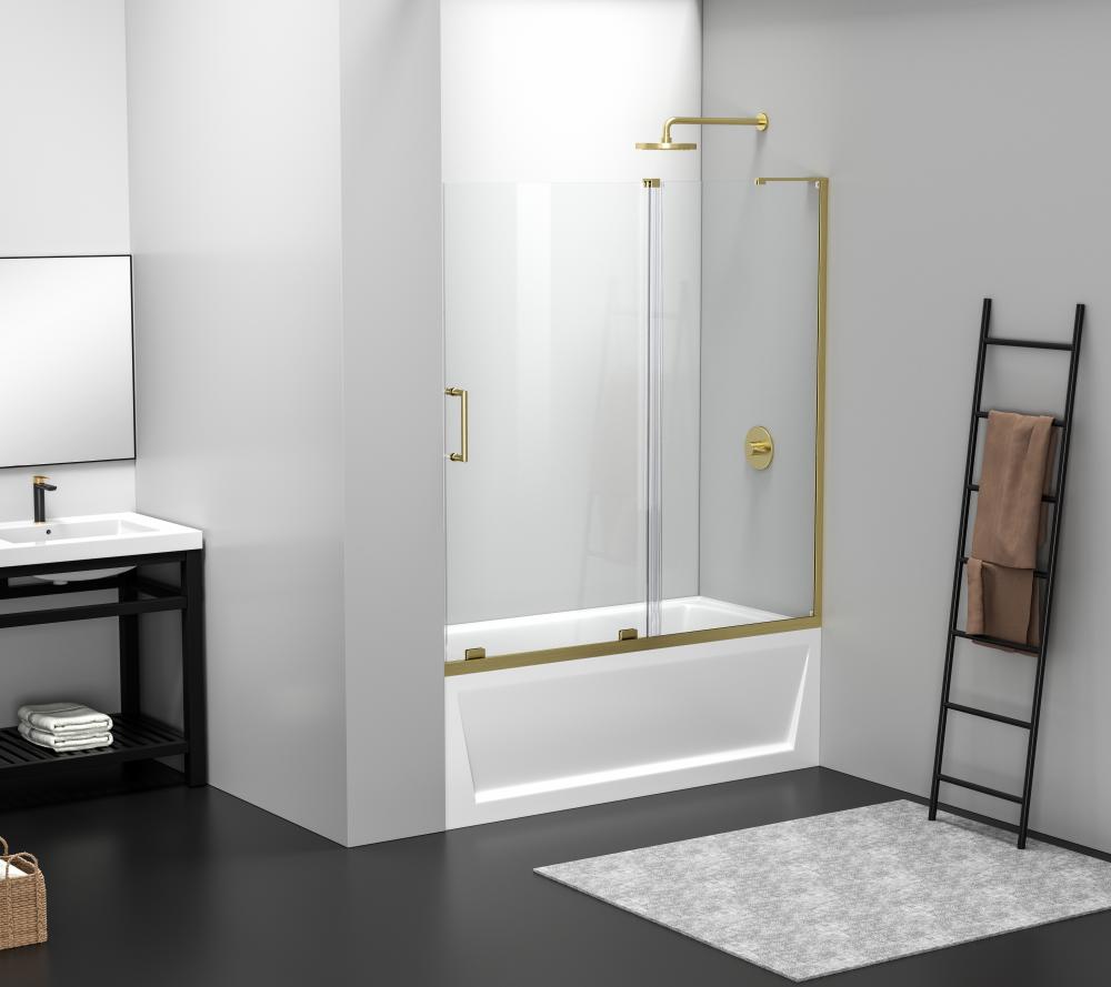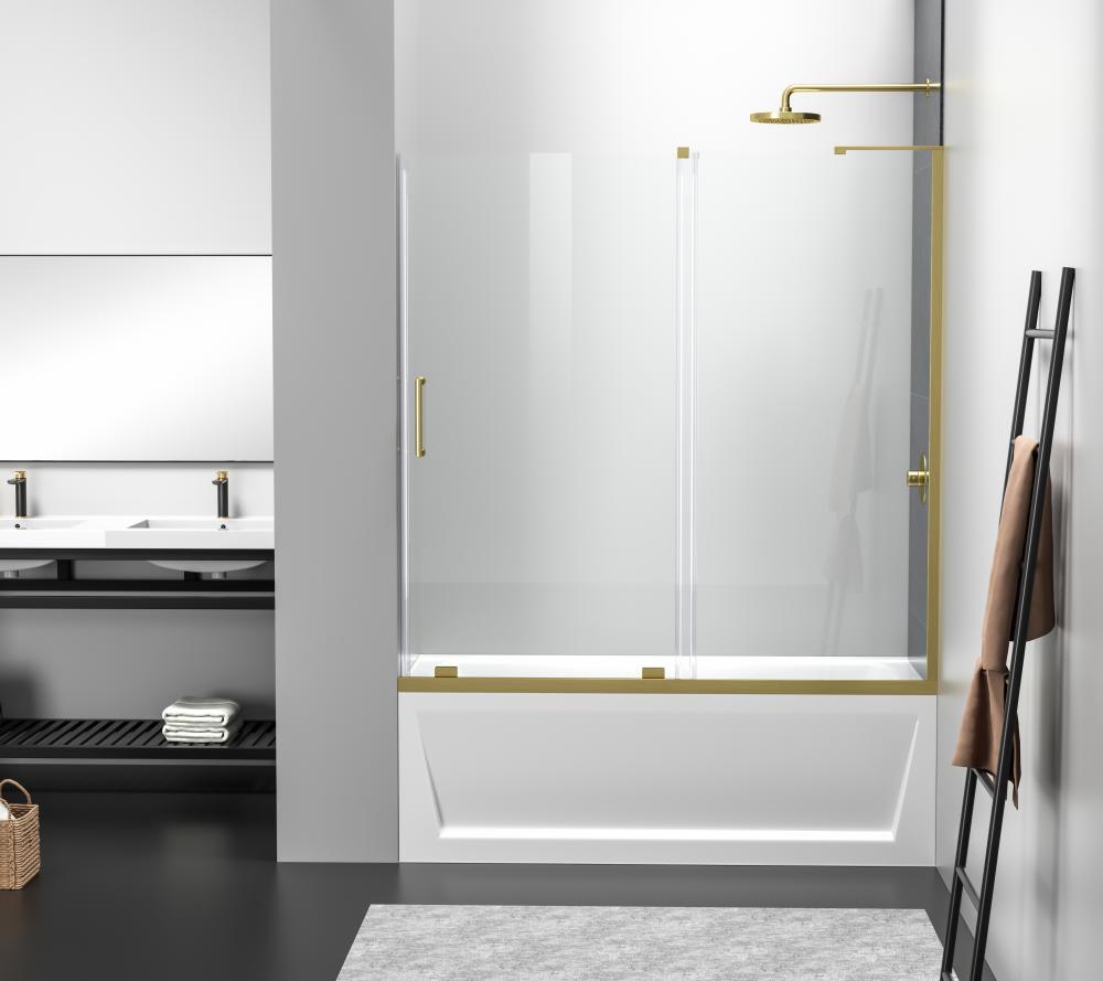 Transform your bathroom into a luxurious oasis with our stunning modern shower tub doors! Our doors are designed to offer both functionality and style, making your shower experience more enjoyable and comfortable. Crafted from high quality materials, our shower tub doors are not only durable but also easy to maintain, making them a practical and long lasting additional to any bathroom. We have four finishes available to choose from to help complement your bathroom décor and aesthetics. Frameless double sliding tub door with 56" - 60" width adjustment range, cut the rails to size. Full length shower door seal thresholds are included to prevent any leaks. Anti-jump mechanism included to ensure safe and smooth door operation.