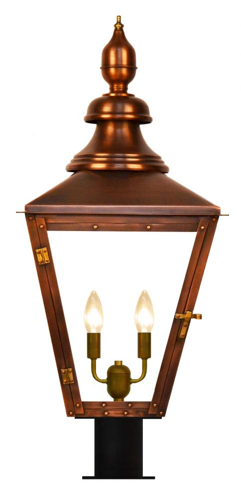Size 41 Electric Copper Lantern, 2 candelabra base sockets, with Post Fitter, Post Fitter Adaptor
