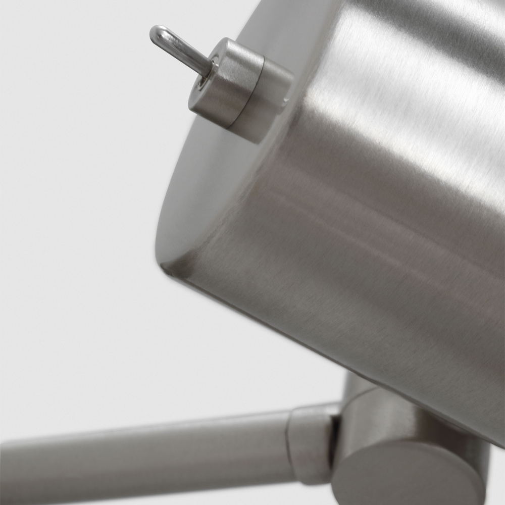 Crafted with Steel in a Brushed Nickel finish with brushed nickel steel shade