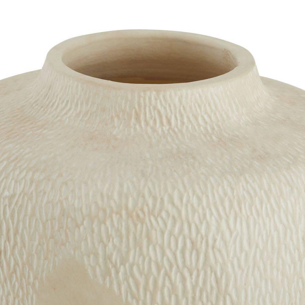Like ancient urns, these classical terracotta accents have a moss-like texture and weathered finish. Embodying the feel of a found object, each vase is glazed in an eggshell shade. Finish will vary.
