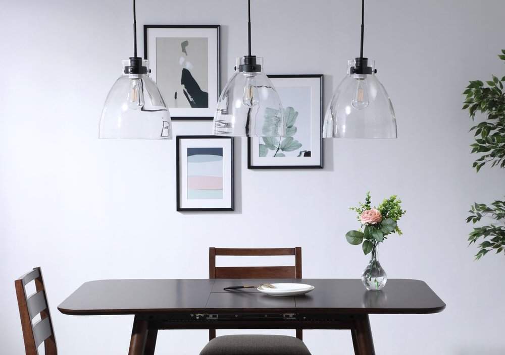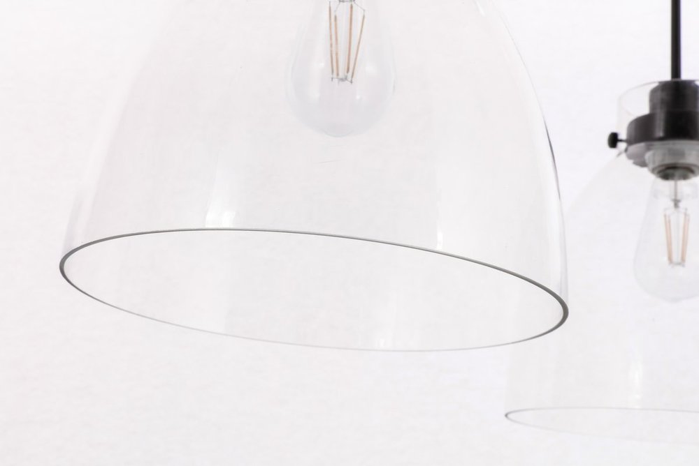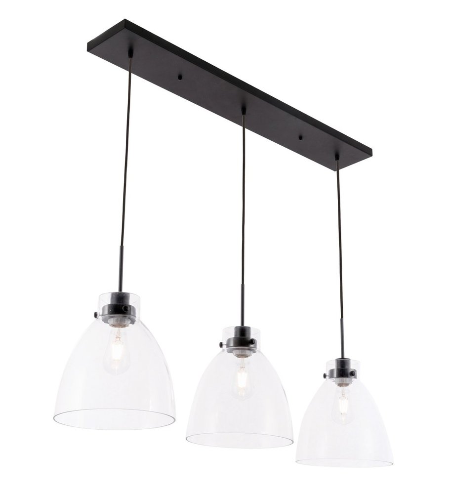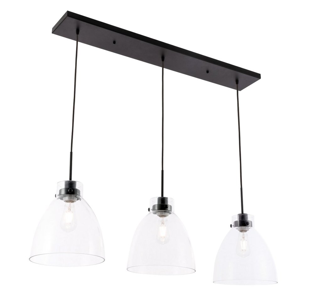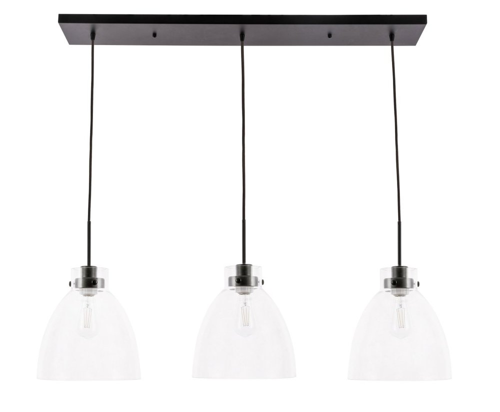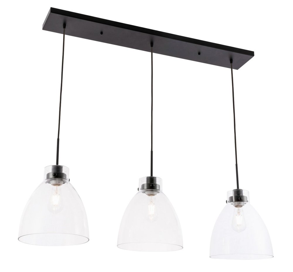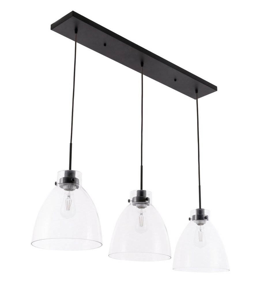 The Frey Collection pendant lamp is contemporary and the perfect lighting fixture in any home. Its urban-style design will create a contemporary aesthetic and the light can illuminate any room in your home, whether its your dining room, living room, or entry way. The three lights hang suspended from a canopy, ensuring that no corner will be left in shadow. Available in a black finish with a round hemispherical shade, brighten your home with light and contemporary style (light bulbs not included).