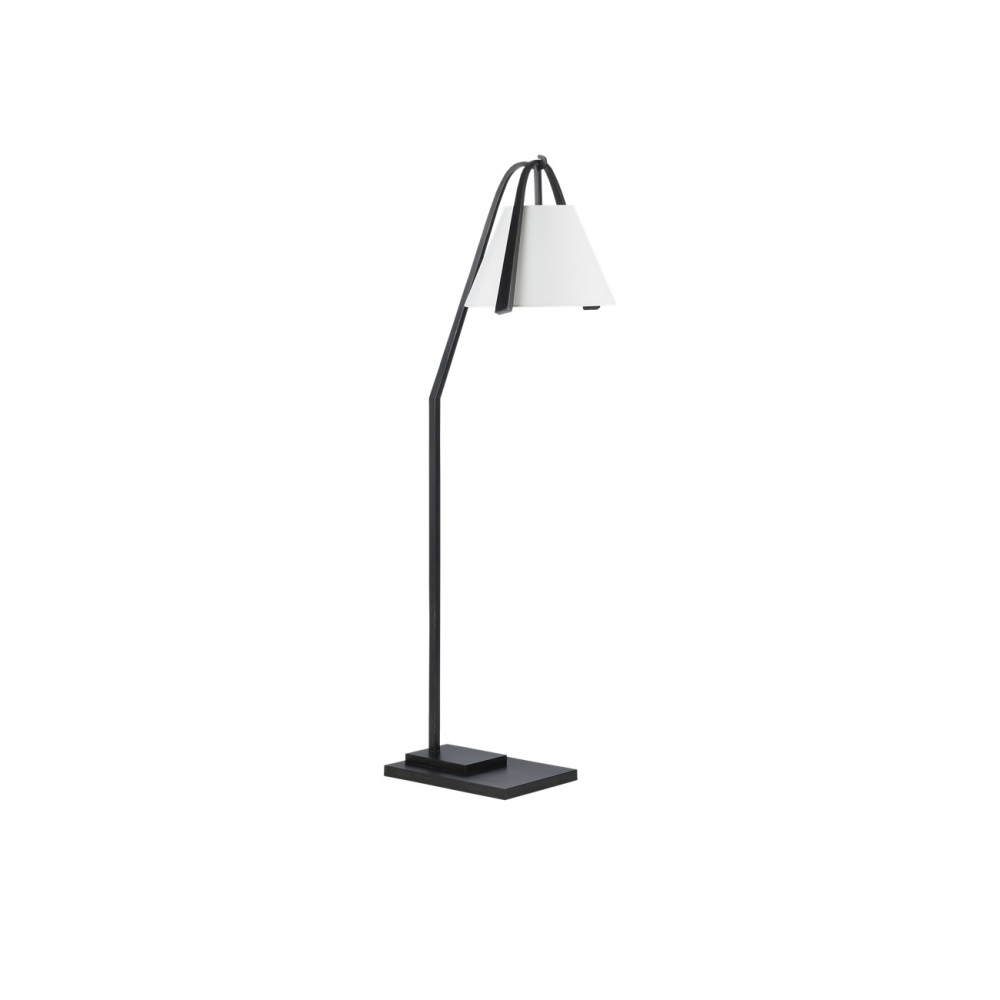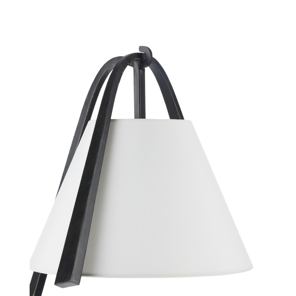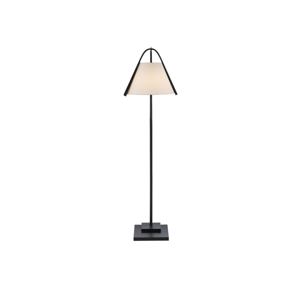 The Frey Floor Lamp brings high style to task lighting with its steel construction in a satin black finish and brushed brown accents. The off-white shantung shade, fitted to the curving arm, adds a refined touch to the design, lending the profile a subtle Asian flair. The stacked base showcases engineered precision while creating a wonderful sense of balance as it extends to the point where the bands holding the shade taper down.