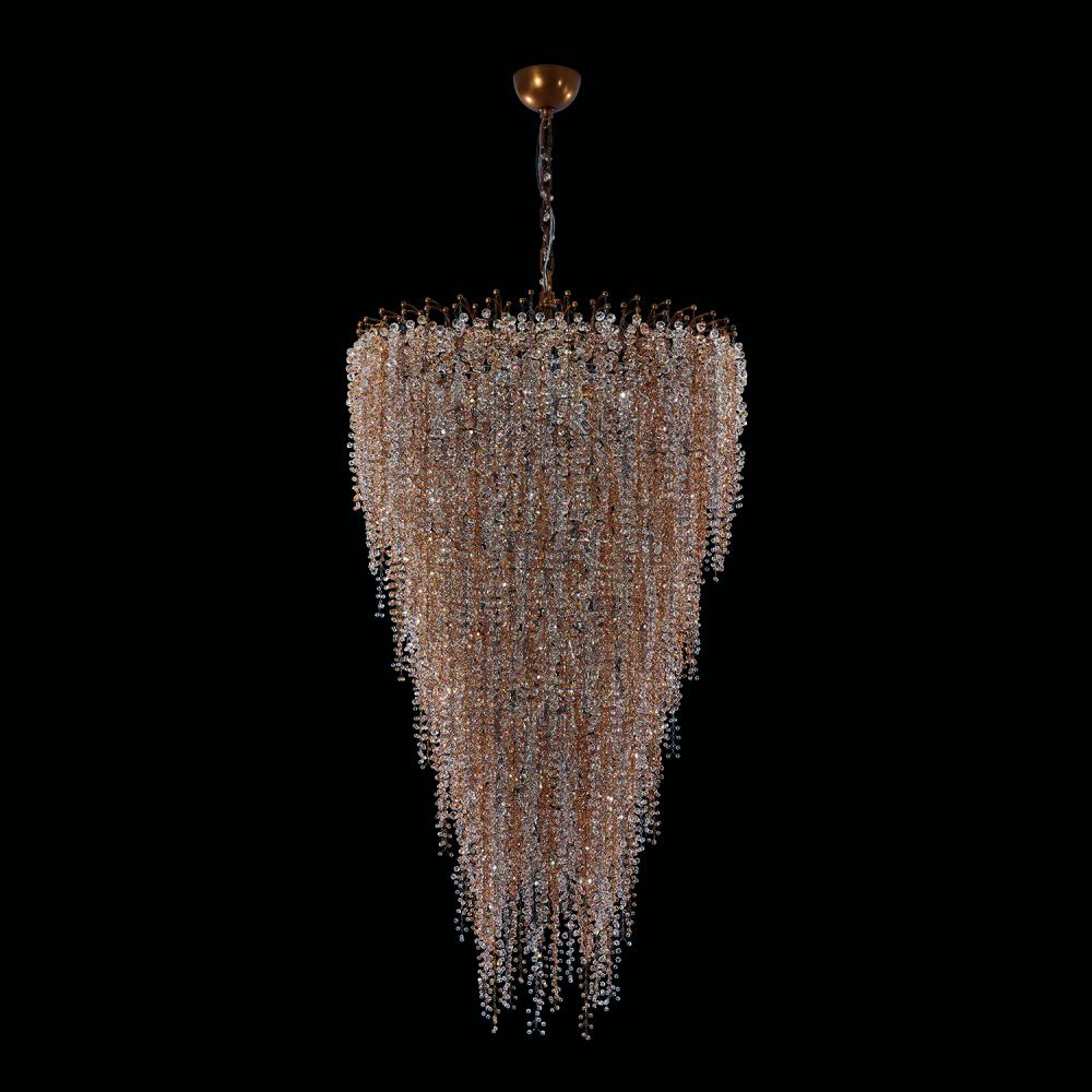 A modern abstract representation of nature, the wisteria inspired Fuji collection creates a vine-like cascade of mixed champagne gold and clear crystals for depth and warmth. Elegance and sophistication included at no extra charge