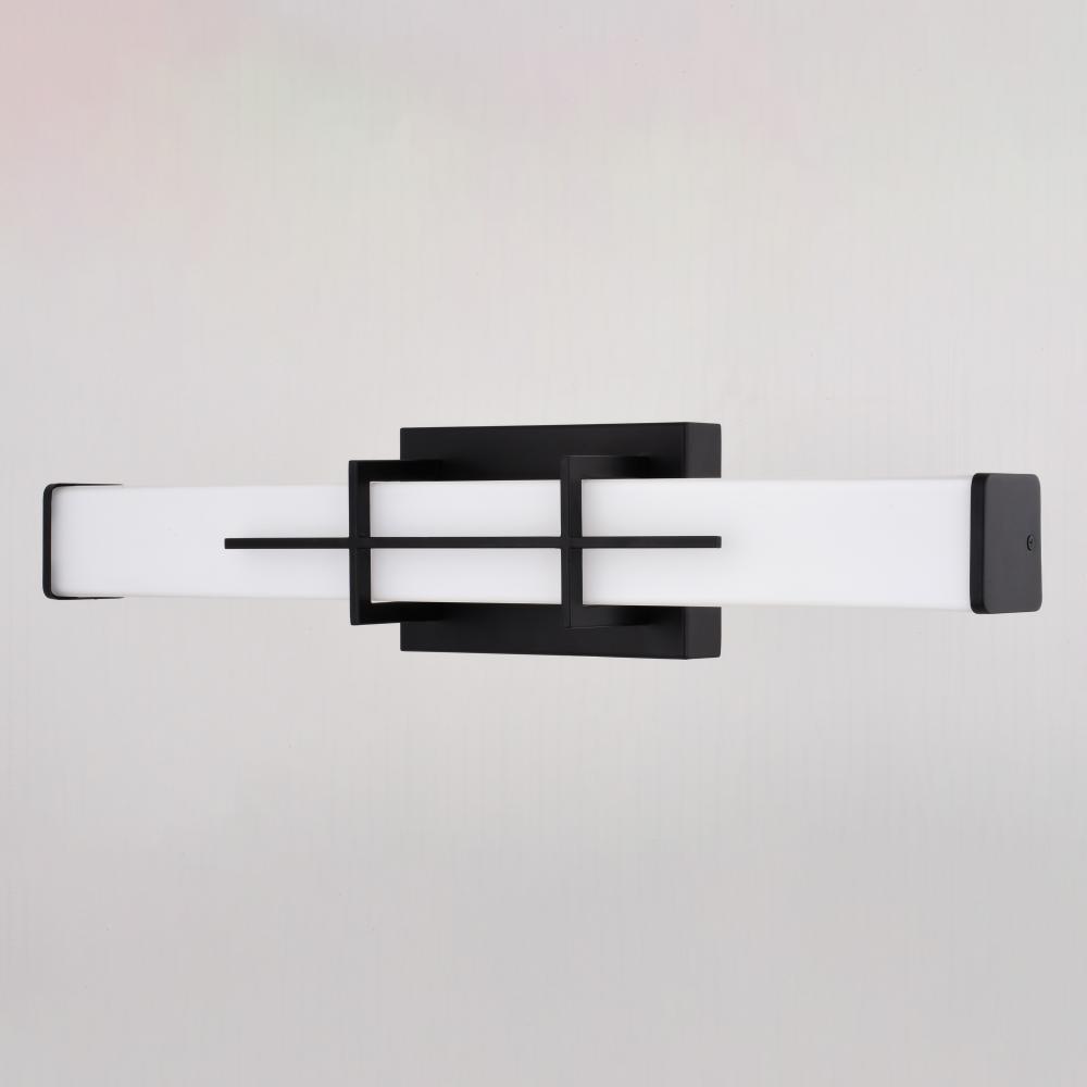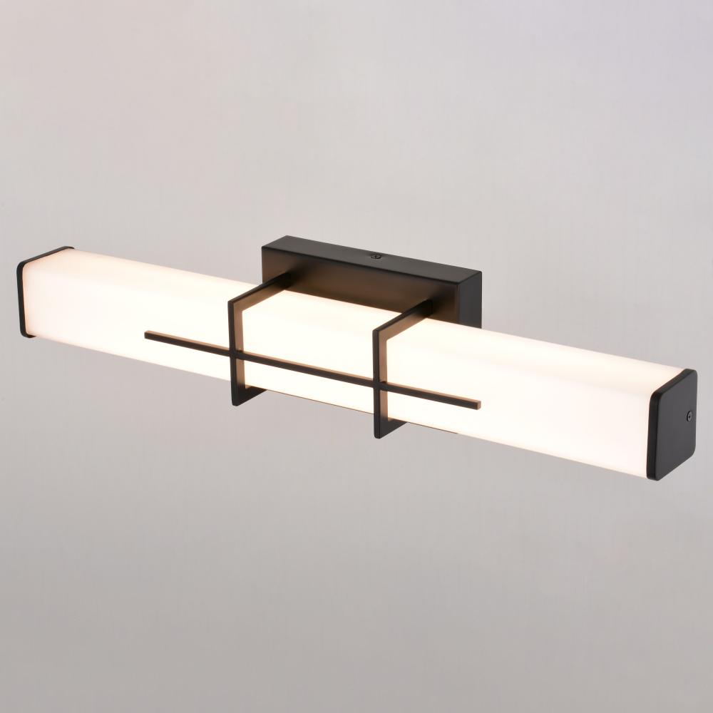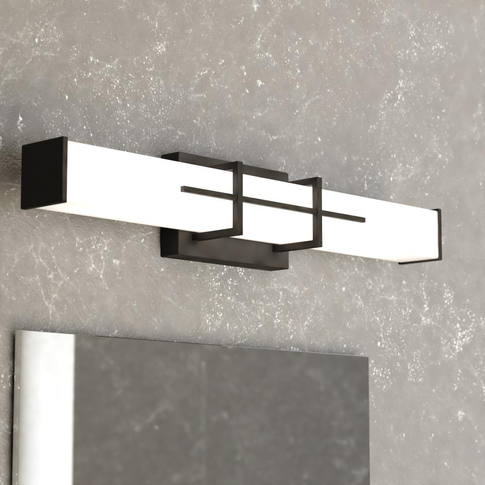 Upgrade your bathroom into a modern oasis of style and light with the Fuller Park LED vanity light's bold and contemporary design. Featuring a unique geometric pattern and integrated, dimmable LED technology, this fixture offers both style and functionality. Enjoy bright, even illumination to enhance your daily routine and create a relaxing ambiance with its dimming capabilities.