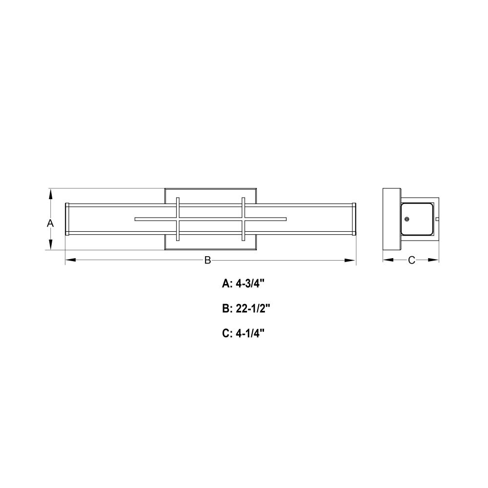 22.5-in W x 4.75-in H x 4.25-in D with 4.5-in W x 4-in H backplate