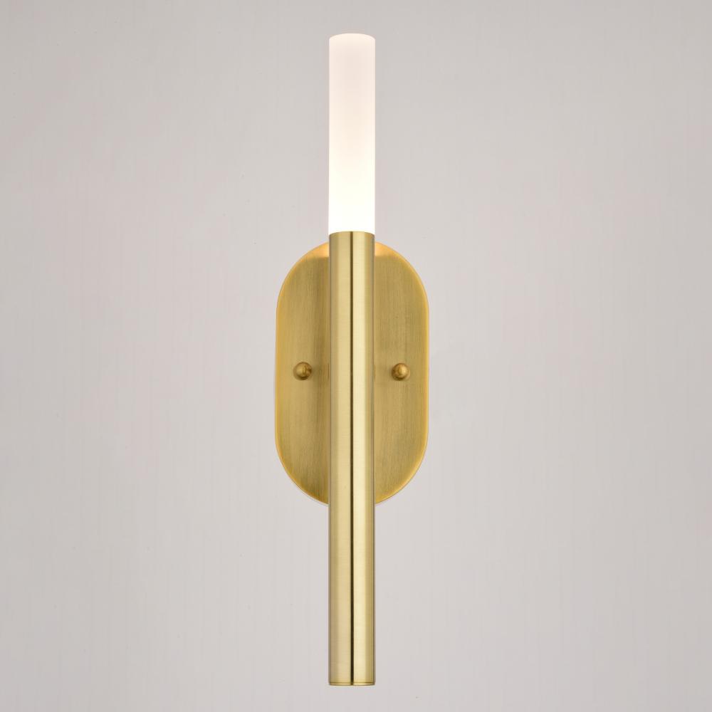 Embrace modern minimalism with the brass Fulton LED wall light's sleek and sophisticated design. Its elongated silhouette and trending oval backplate add a touch of contemporary elegance to any bathroom or living spaces. Illuminate your space with a refined glow, using a pair to frame a bathroom mirror, as a stylish bedside reading light or to highlight a fireplace with focused illumination.