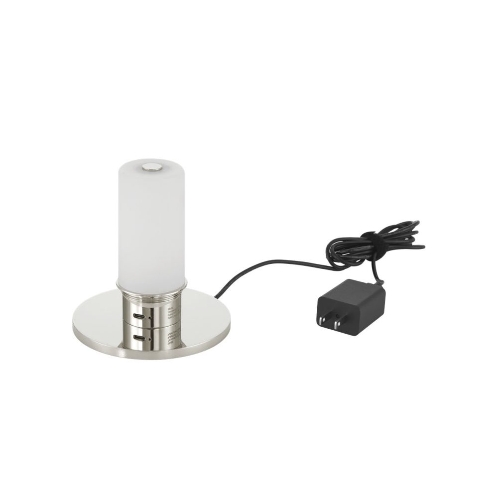The Gadabout Nickel Cordless Table Lamp is a silver lamp that is easy to move from room to room given it is fitted with a rechargeable bulb. The light source sits atop the thin stem beneath a matching metal shade in a polished nickel finish. The on/off switch is on the top of the bulb and the shade is finished on the inside for a luxe touch.