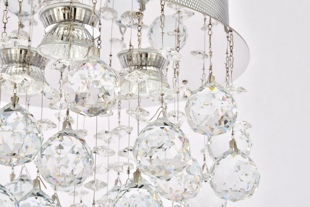 The Galaxy collection is brilliantly distinctive for its flush-mount fixtures’ many dazzling crystals of various sizes and shapes suspended and gently spinning in space. Illumination from the chrome-finish base lights up a room with both direct light emitting downward and refracted radiance from the multi-faceted crystals below. Available in a choice of crystal trims.