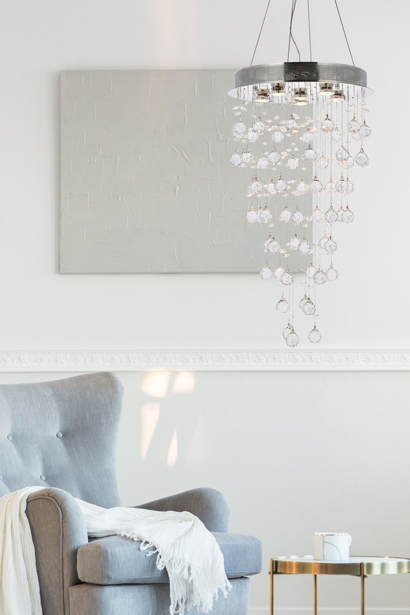 Galaxy 7 light Chrome Pendant Clear Royal Cut Crystal