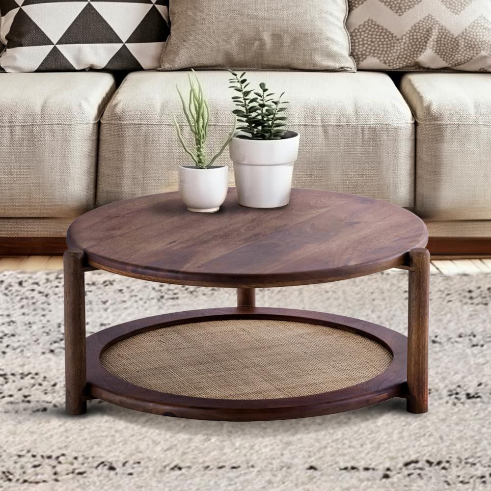 Enhance your living room with the GARAM Walnut coffee Table, a perfect blend of rustic charm and modern design. Crafted from high-quality wood with a natural walnut finish, this round coffee table adds a touch of elegance to any space. Its sturdy construction ensures durability while the minimalist design complements a variety of interior styles. The lower shelf provides additional storage or display space, making it both functional and stylish. Ideal for holding your coffee, books, or decorative items, the GARAM Walnut coffee Table is a versatile addition to your home.