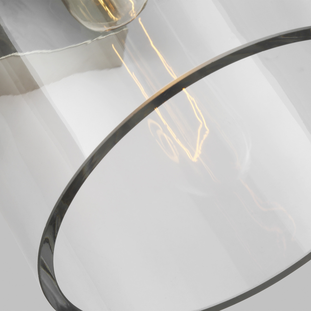 Garrett from Chapman & Myers for Visual Comfort Studio features cylindrical Clear Extruded Glass shades paired with industrial hardware. The two light flush mount fixture in burnished brass supplies ample lighting for your daily needs, while adding a layer of today's style to your home's décor. This striking blend of metal and glass, sophisticated in its simplicity, is both industrial and glamorous. It is sure to inspire a higher level of style wherever it is placed.