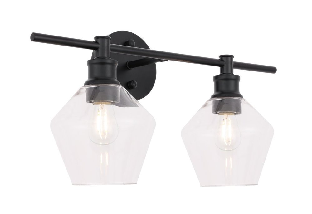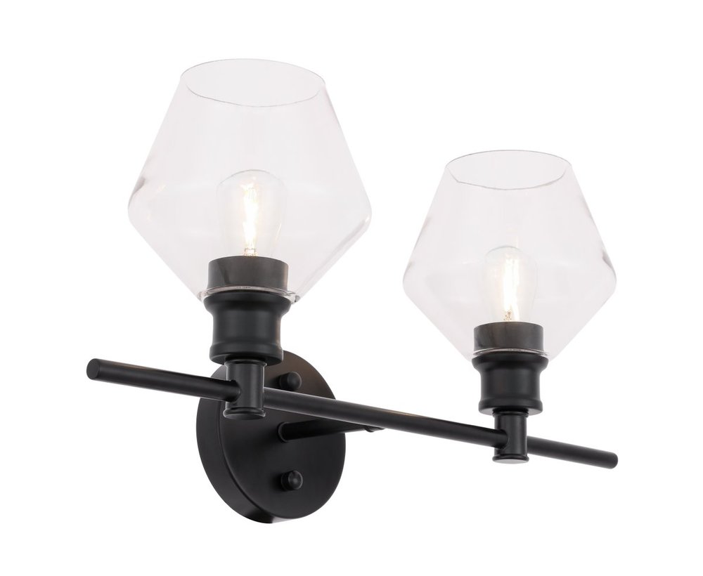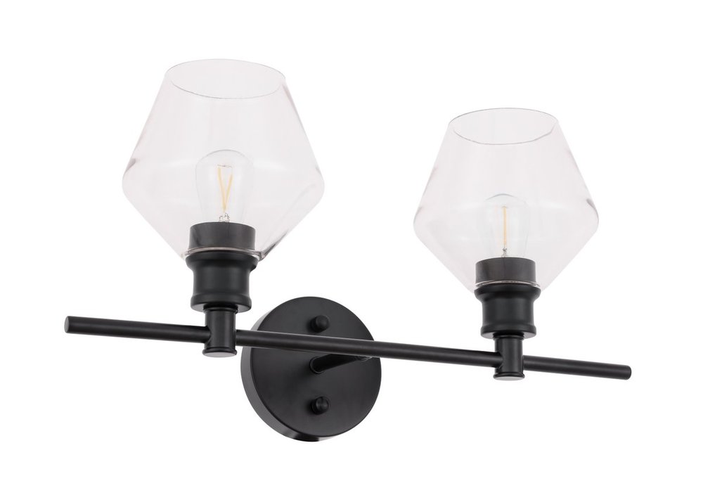 The Gene Collection of lights will be sure to have your guests admire your modern sense of style with the beautiful simplicity of its shape and form. The clean lines of the rhombus shaped shades create the juxtaposition of intricate simplicity, achieving a style that has both form and function. This wall lamp can be oriented facing up or down, but will always illuminate your room. Available in a brass, chrome, or black finish with either a clear or frosted rhombus glass shade, it is the perfect wall lamp to enhance your bathroom, foyer, or hallways, allowing you to always live in sleek contemporary style (light bulbs not included).