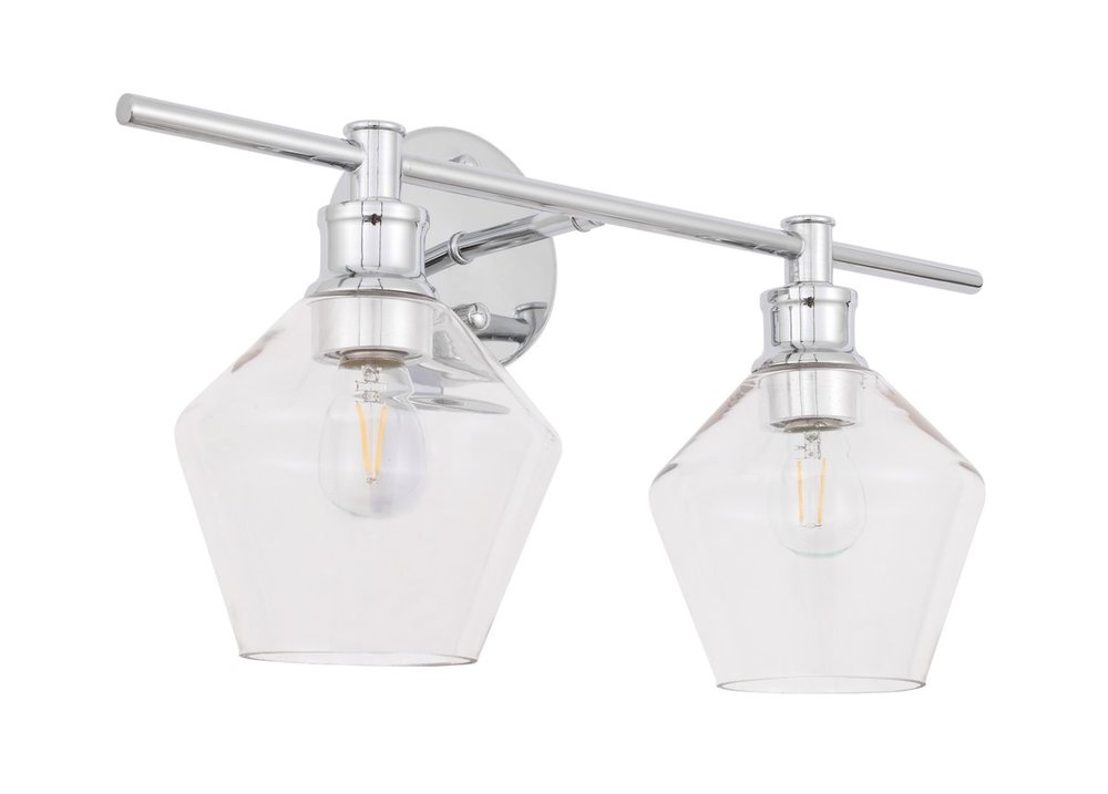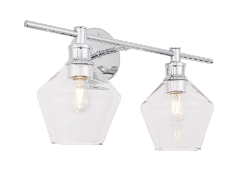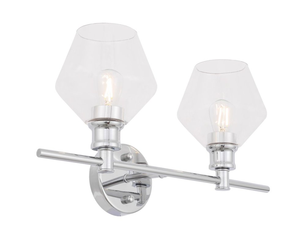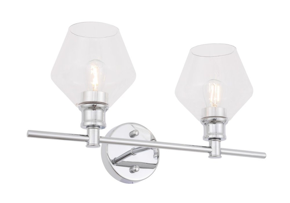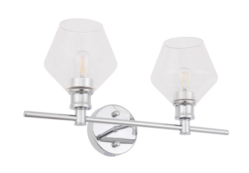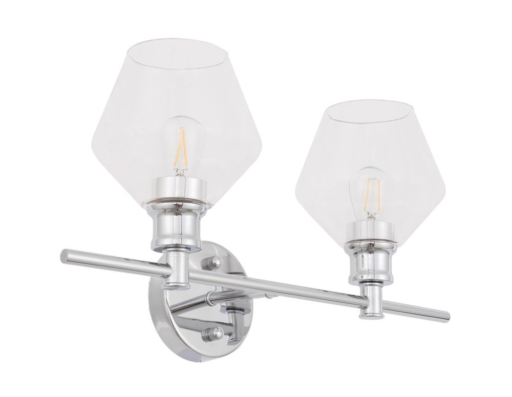 The Gene Collection of lights will be sure to have your guests admire your modern sense of style with the beautiful simplicity of its shape and form. The clean lines of the rhombus shaped shades create the juxtaposition of intricate simplicity, achieving a style that has both form and function. This wall lamp can be oriented facing up or down, but will always illuminate your room. Available in a brass, chrome, or black finish with either a clear or frosted rhombus glass shade, it is the perfect wall lamp to enhance your bathroom, foyer, or hallways, allowing you to always live in sleek contemporary style (light bulbs not included).