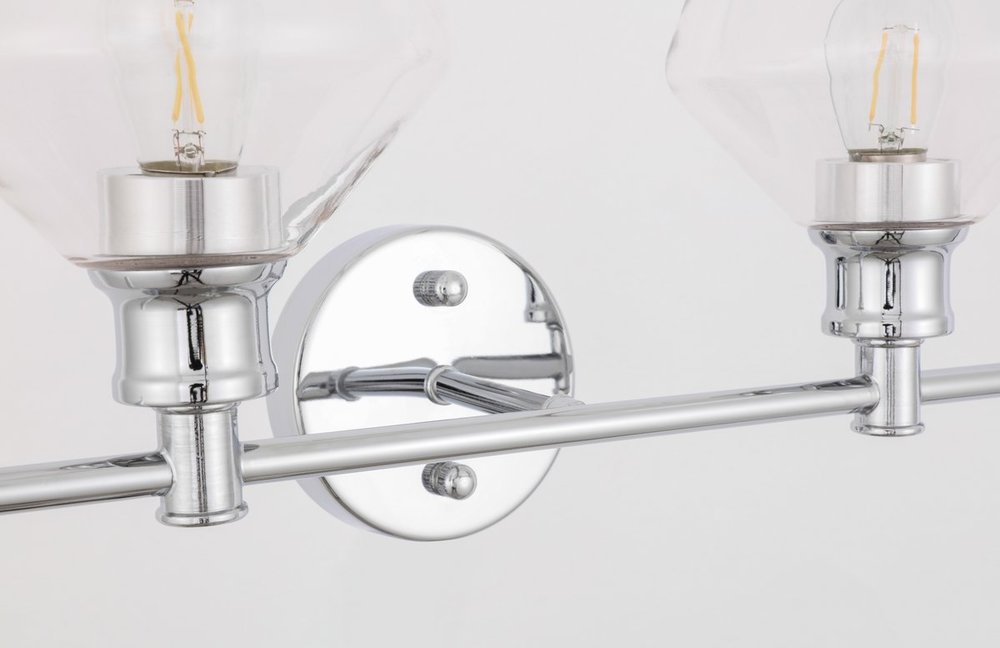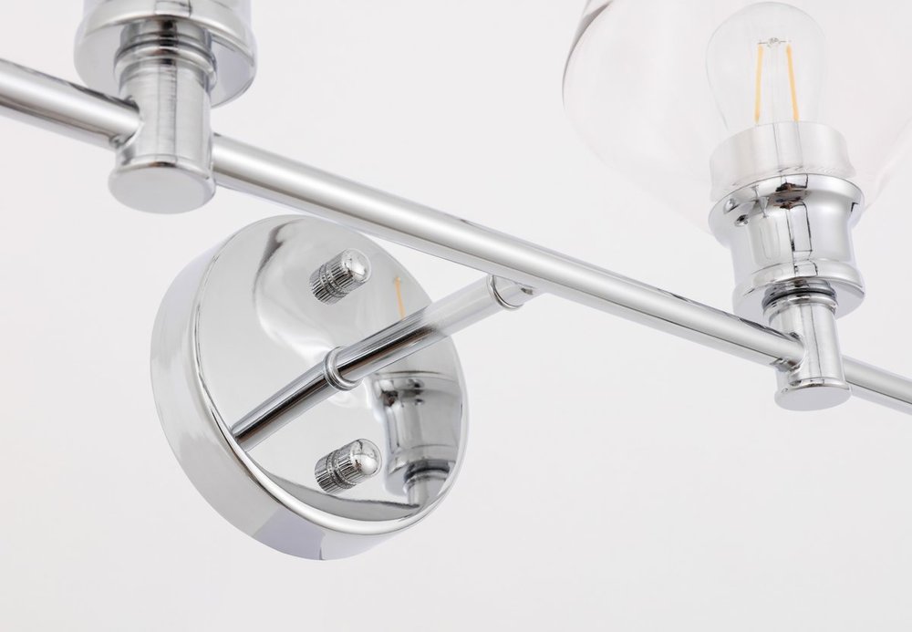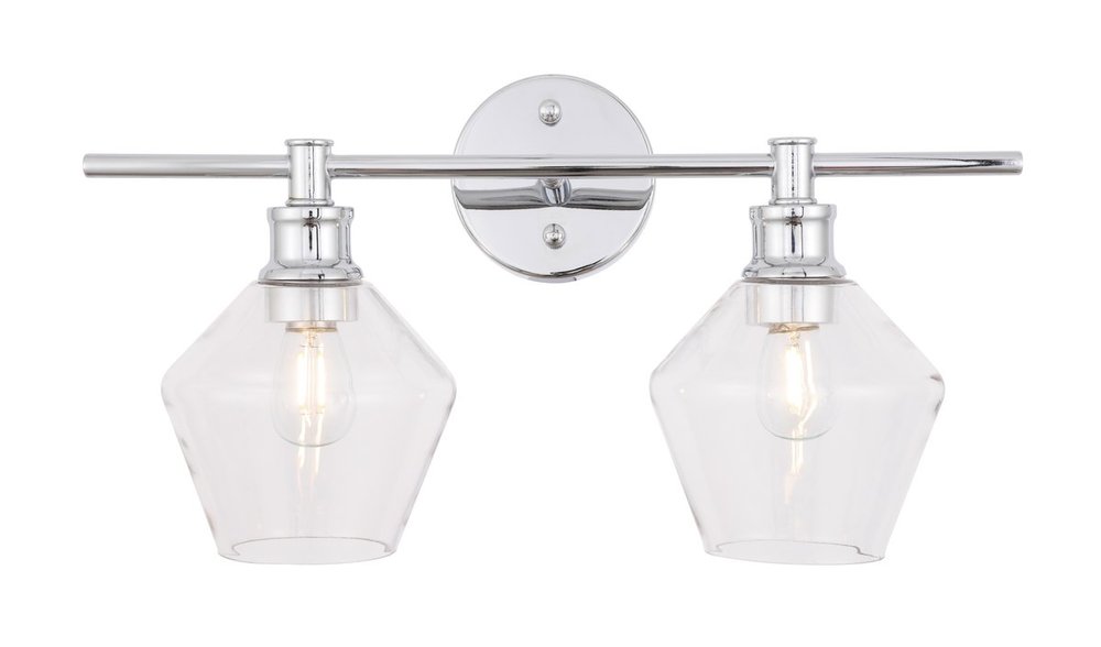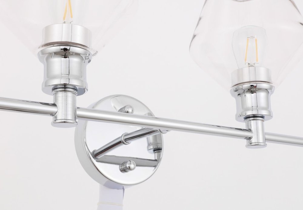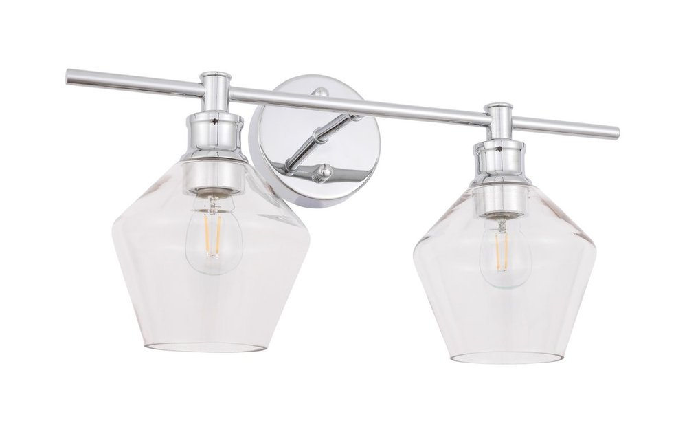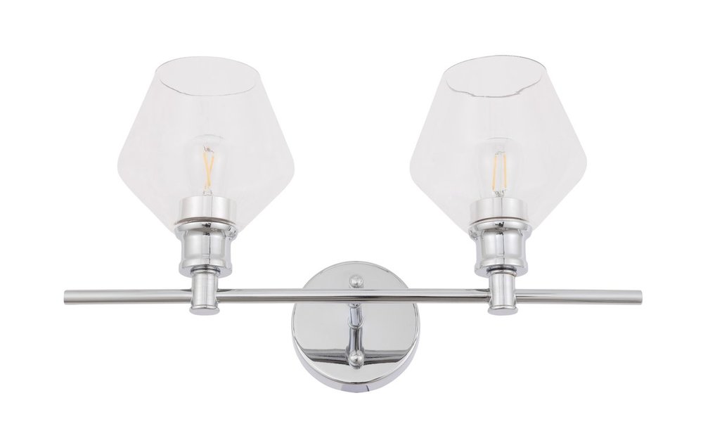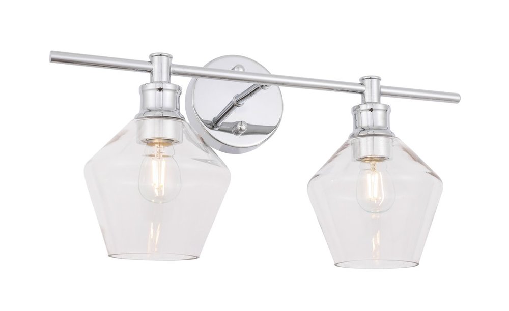 The Gene Collection of lights will be sure to have your guests admire your modern sense of style with the beautiful simplicity of its shape and form. The clean lines of the rhombus shaped shades create the juxtaposition of intricate simplicity, achieving a style that has both form and function. This wall lamp can be oriented facing up or down, but will always illuminate your room. Available in a brass, chrome, or black finish with either a clear or frosted rhombus glass shade, it is the perfect wall lamp to enhance your bathroom, foyer, or hallways, allowing you to always live in sleek contemporary style (light bulbs not included).