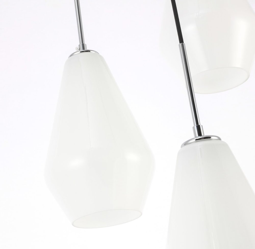 The Gene Collection of lights will be sure to have your guests admire your modern sense of style with the beautiful simplicity of its shape and form. The canopy supports three pendant lights that can be adjusted to different heights in order to create dramatic levels of lights and shadows. The pendant's clean lines created by the cords and diamond shaped shades makes this the perfect lighting addition to any home that is in need of a chic modern flair. Available in a brass, chrome, or black finish, with either a clear or frosted diamond glass shade, enhance your dining room, living room, or bedroom with the Gene Collection hanging pendant and live in sleek contemporary style (light bulbs not included).