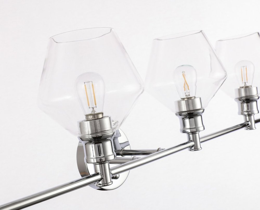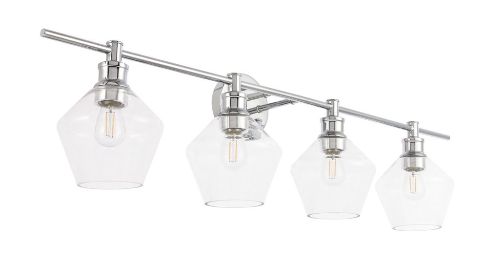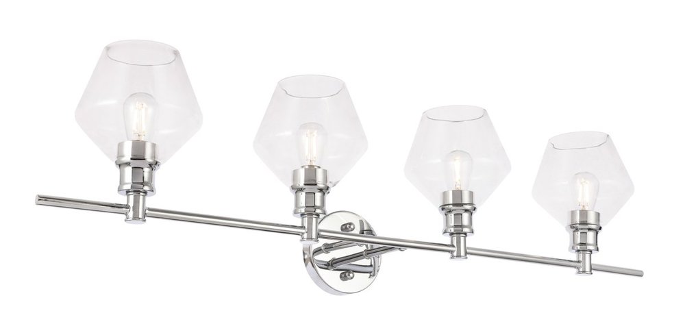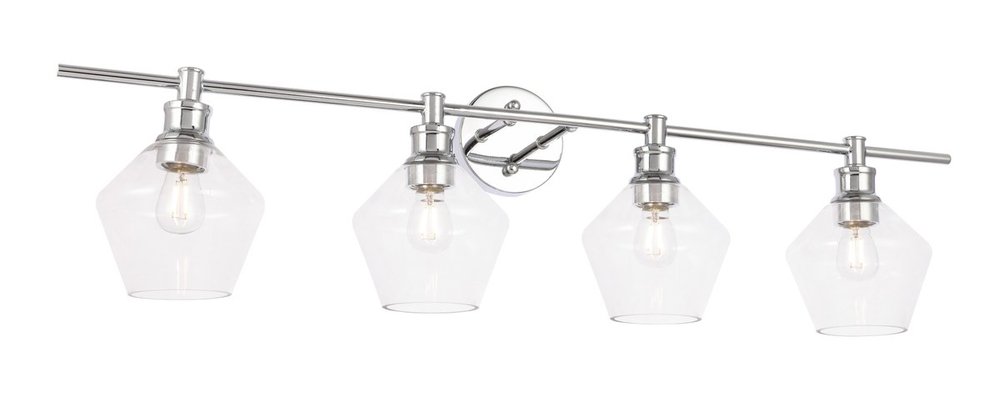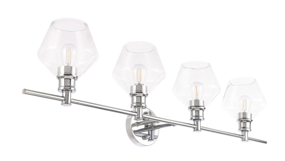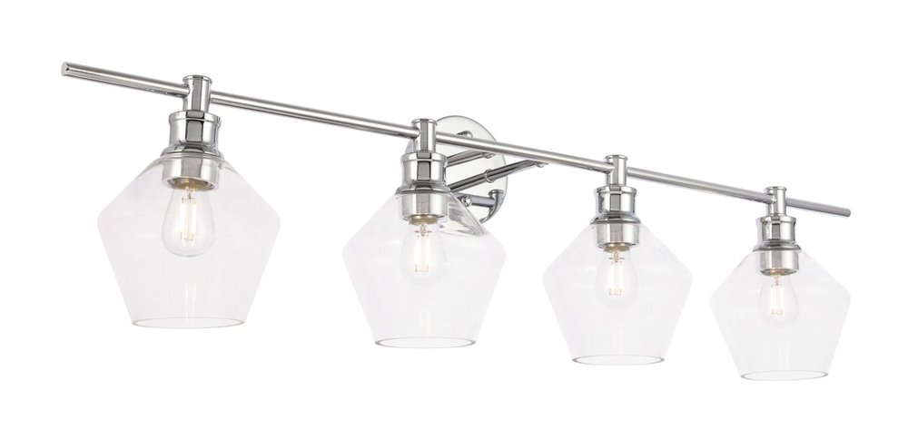 The Gene Collection of lights will be sure to have your guests admire your modern sense of style with the beautiful simplicity of its shape and form. The clean lines of the rhombus shaped shades create the juxtaposition of intricate simplicity, achieving a style that has both form and function. This wall lamp can be oriented facing up or down, but will always illuminate your room. Available in a brass, chrome, or black finish with either a clear or frosted rhombus glass shade, it is the perfect wall lamp to enhance your bathroom, foyer, or hallways, allowing you to always live in sleek contemporary style (light bulbs not included).