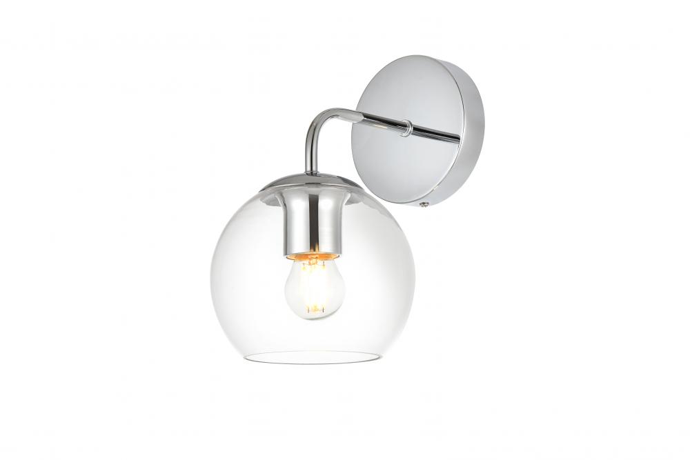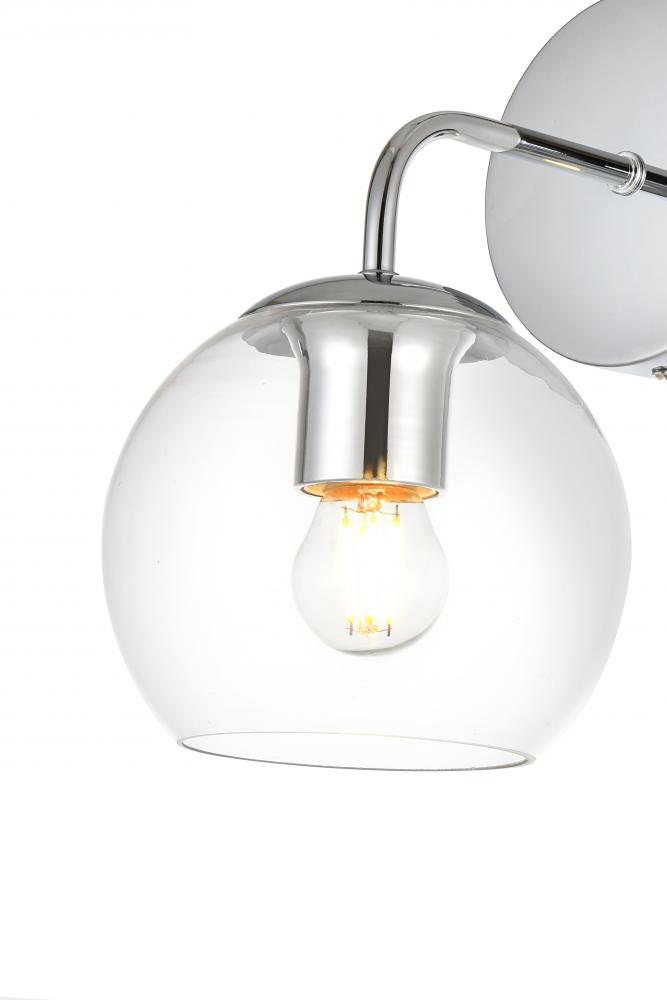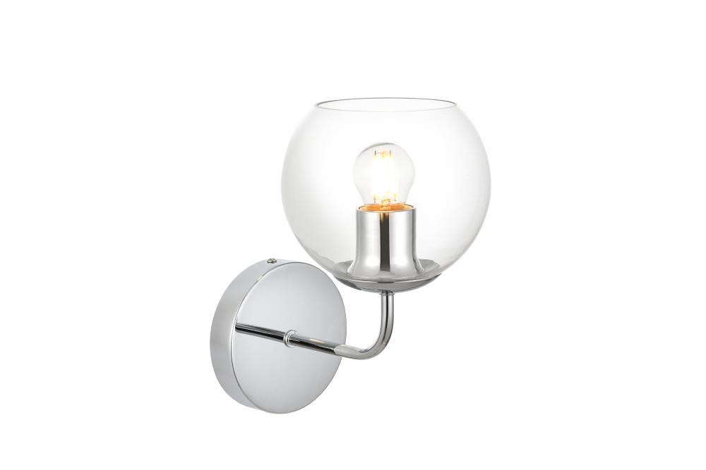 clear glass shade filter light from the curved metal armed sconce