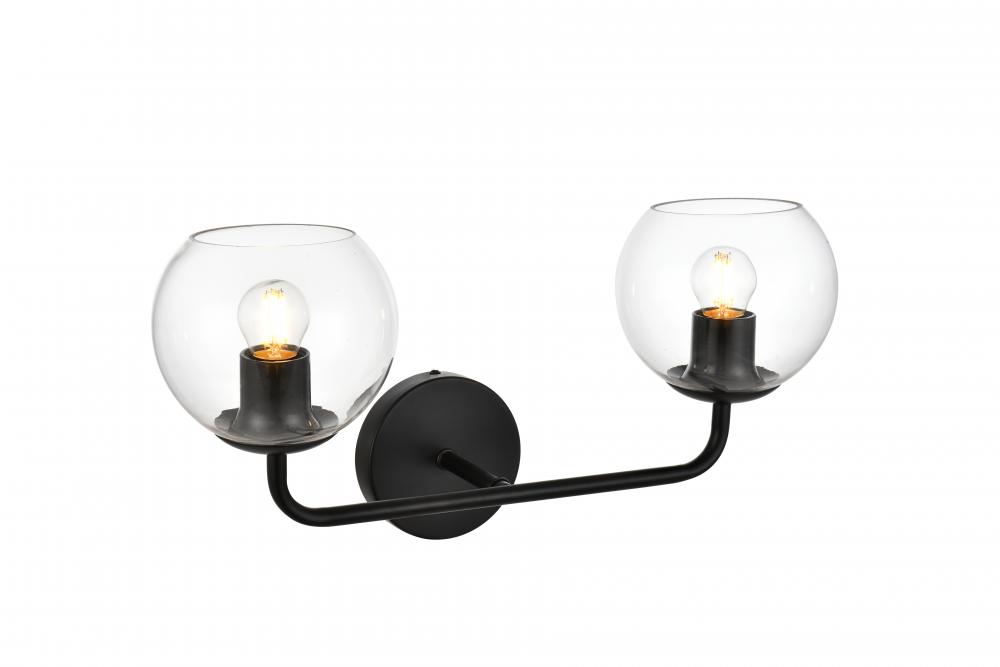 A modern twist on a traditional design, this vanity light is perfect for sprucing up your bathroom. Rated for use in damp locations, this iron fixture features a round backplate, curved arms, and orb accents. Completely versatile, you can place this wall light as an uplight or downlight. Rated for use in damp locations, this will work perfectly over a vanity in your bathroom.