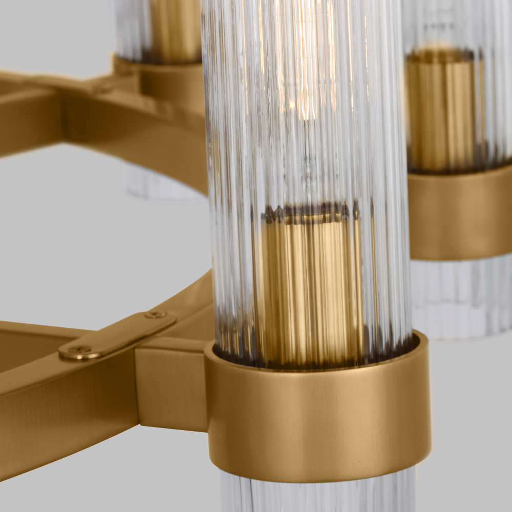 Designed by Chapman & Myers, the Geneva eight-light single-tier chandelier in Burnished Brass is the perfect way to achieve your desired fashion or functional needs in your home. A fluted shade forms an elegant, dynamic silhouette balanced by a strong frame of Aged Iron, Burnished Brass, or Polished Nickel.