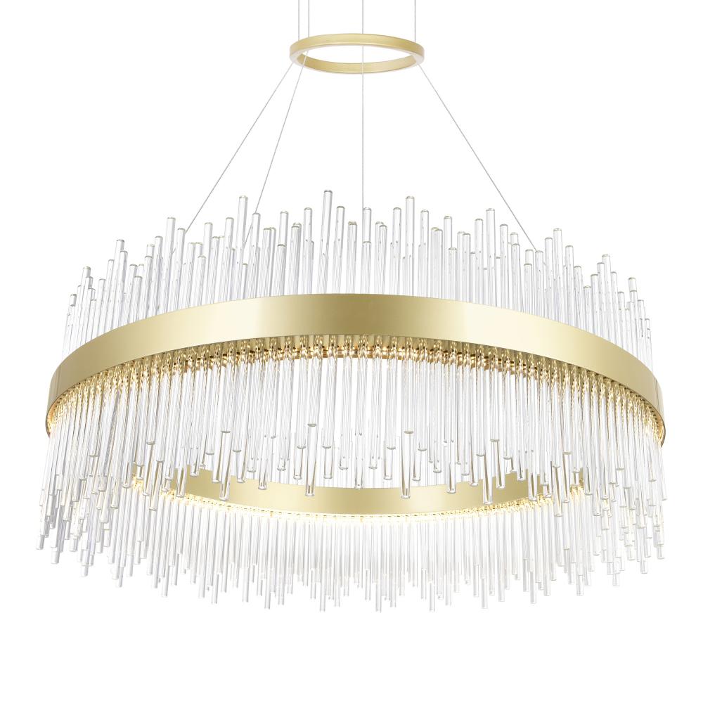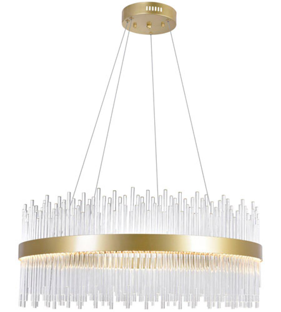 Bring a luxurious touch to your space with the Genevieve 32" Medallion Gold LED Chandelier. Featuring slim clear crystal rods in varying heights, this chandelier offers a seamless blend of classic and contemporary style. The oversized round light fixture, finished in medallion gold, will add both brilliance and sophistication to your living room, dining room, or bedroom. Finish: Medallion Gold Fixture Width: 32" Light Count: Integrated LED Mount Type: Chandelier