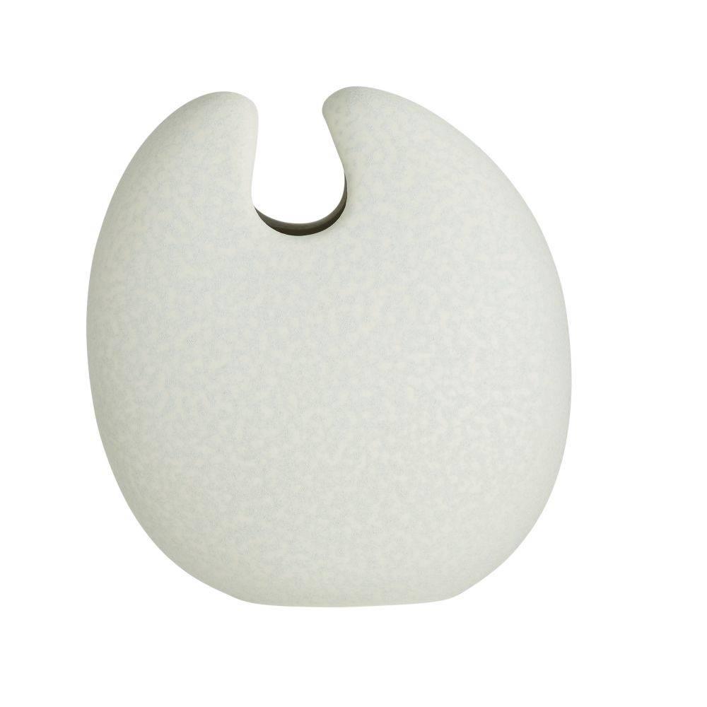 The playful pinching and pulling of clay during the sculpting process results in Genovia's Zen-like form. Our white mint reactive glaze finishes the resulting contemplative porcelain shape. Finish will vary.