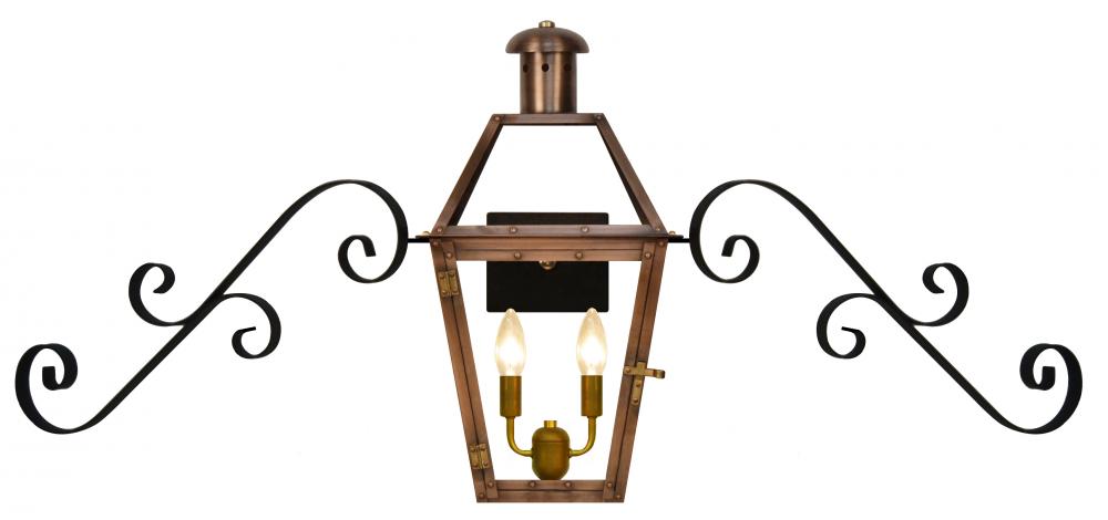 Size 20 Electric Copper Lantern, 2 candelabra base socket, with Duel Scroll Moustache
