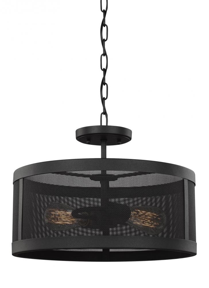 The Gereon two light semi flush fixture in black is the perfect way to achieve your desired fashion or functional needs in your home. A distinctive mesh lampshade in the Gereon Collection harkens back to the industrial days of machine innovation, adding a rugged look of workmanship that transforms an interior's identity. At once stylistic and utilitarian, Gereon is available in a finely textured Black finish with medium base sockets. The muted glow of the bulbs beneath the mesh framing adds a rugged personality. The versatile Gereon fixtures are damp rated for covered outdoor installations as well. Available as a 1-light mini-pendant, 3-light and 4-light pendants, 2-light semi-flush ceiling mount, and 1-light wall sconce to adapt interior settings in a variety of ways.