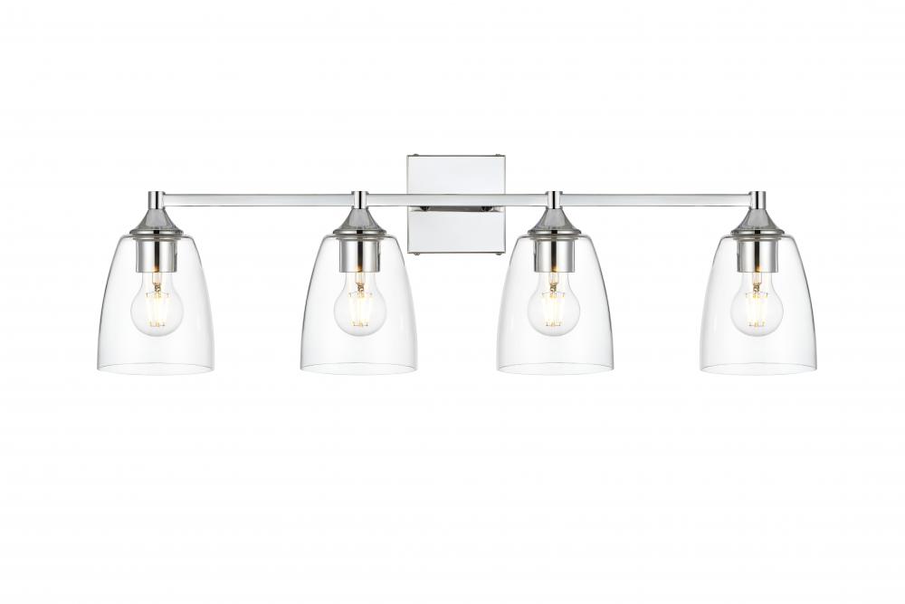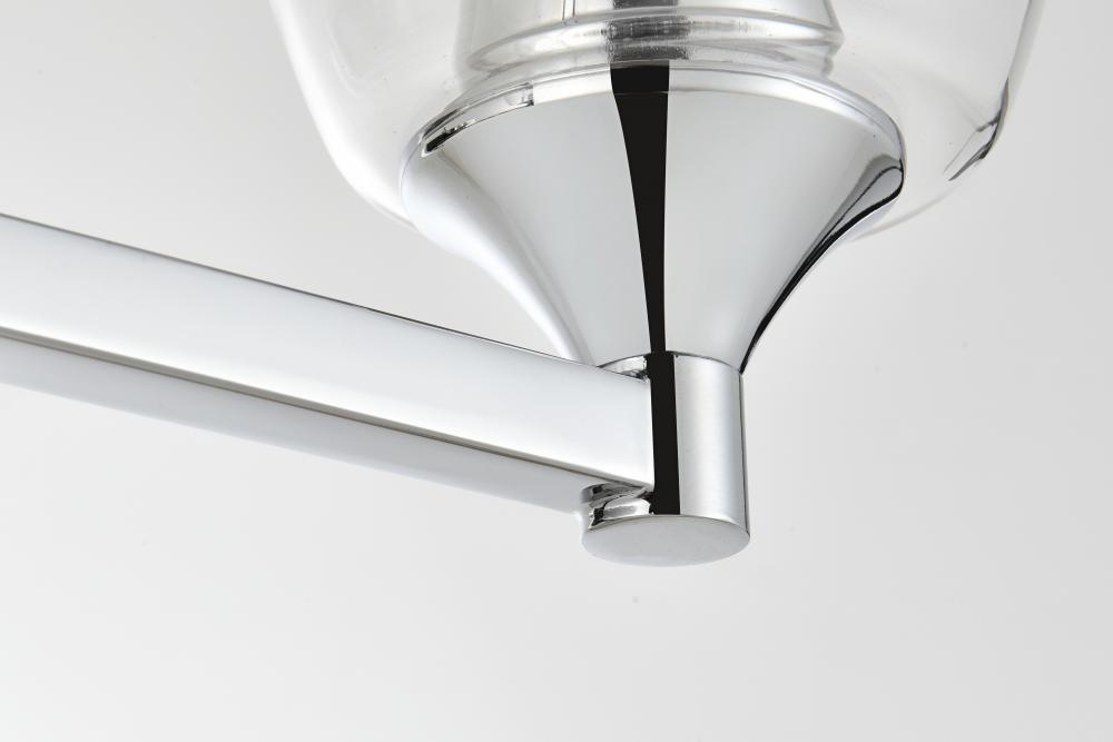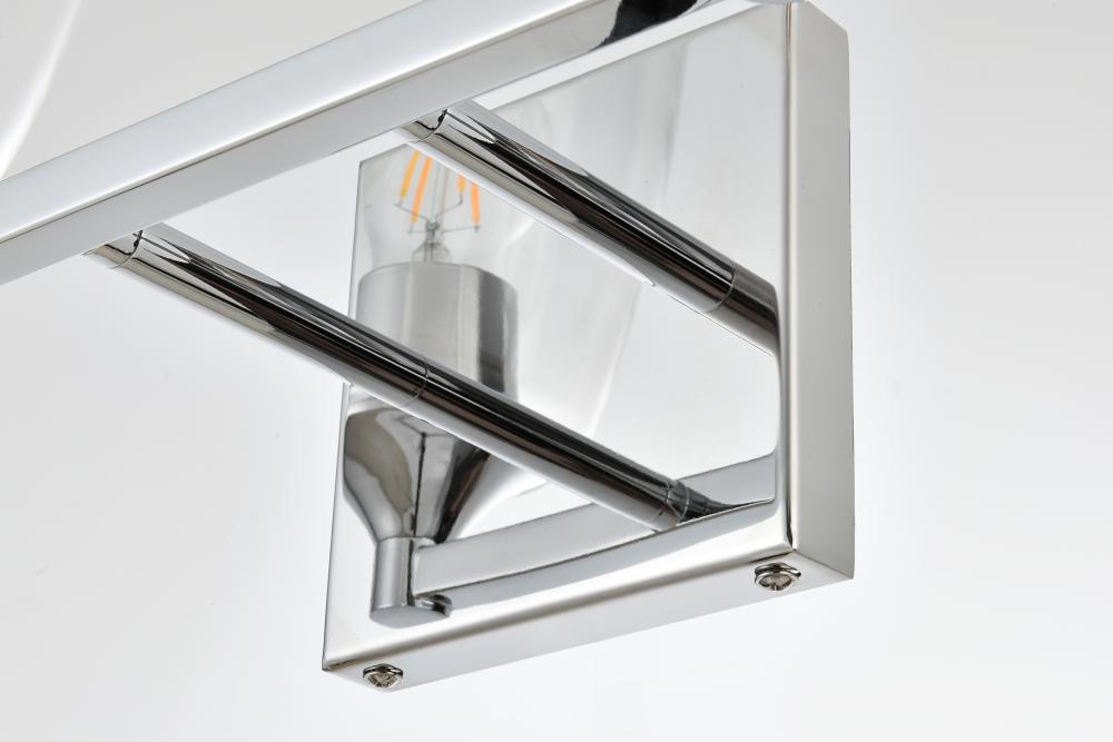 Defined by a sleek metal arm extends to suspend the clear tapered glass shade. A contemporary stunner, it shows off the straight line details from the backplate and the streamline thick metal arm. Compatible with dimmers, so you'll have the right amount of light in any given time of the day. Completely versatile, you can place this wall light as an uplight or downlight. Rated for use in damp locations, this will work perfectly over a vanity in your bathroom.