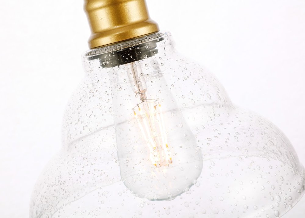 The Gil Collection is a modern and contemporary must for any modern day home. Its clear bubble shade adds a surprising visual interest and its compact size can illuminate any room small or large. You'll be sure to have lots of good memories with this light, from laughing with friends as you drink cocktails and watch the city breathe to life at night, to a relaxing day of baking cookies with family as soft music plays in the background. The center piece for any modern family, this fixture is available in a black, chrome, or brass finish (light bulbs not included).