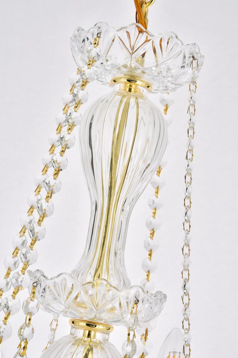 These spectacular chandeliers of the Giselle collection are so magically beautiful, you can easily imagine Cinderella dancing under them in the palace ballroom with Prince Charming. The fixtures’ Old World elegance and sophistication are evident in their tiers of crystal candle covers atop scalloped bobéches, adorned with festoons of crystal beads and pendeloques, all surrounding a magnificent crystal centerpiece.