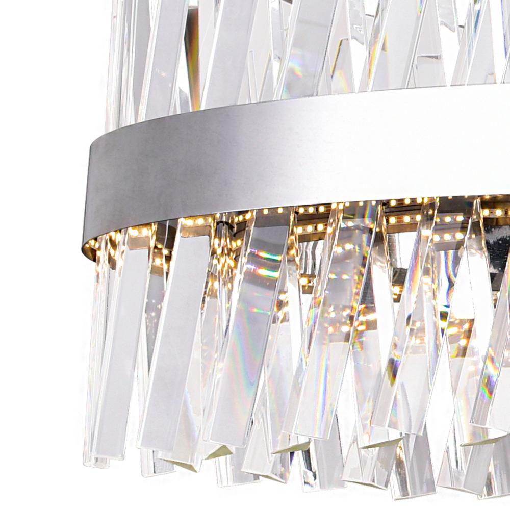 Make an unforgettable impression with the Glace 40'' LED Chandelier in Chrome. This glamorous circular chandelier features a polished chrome ring adorned with slender translucent crystal spears radiating outward. Built with integrated LED lighting, it offers both beauty and efficiency, casting luxurious light across your space. Whether installed in a modern dining room, a contemporary living room, or a high-ceilinged foyer, this chandelier adds bold visual drama and refined elegance with every gleam. Finish: Chrome Light Count: Integrated LED Light Source: LED, No Bulb Required Adjustable Hanging Height: Yes Material: Metal & Crystal Style: Modern / Glam