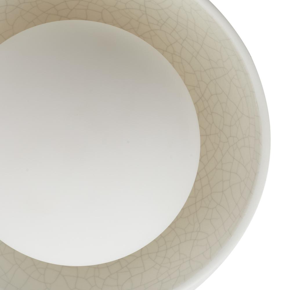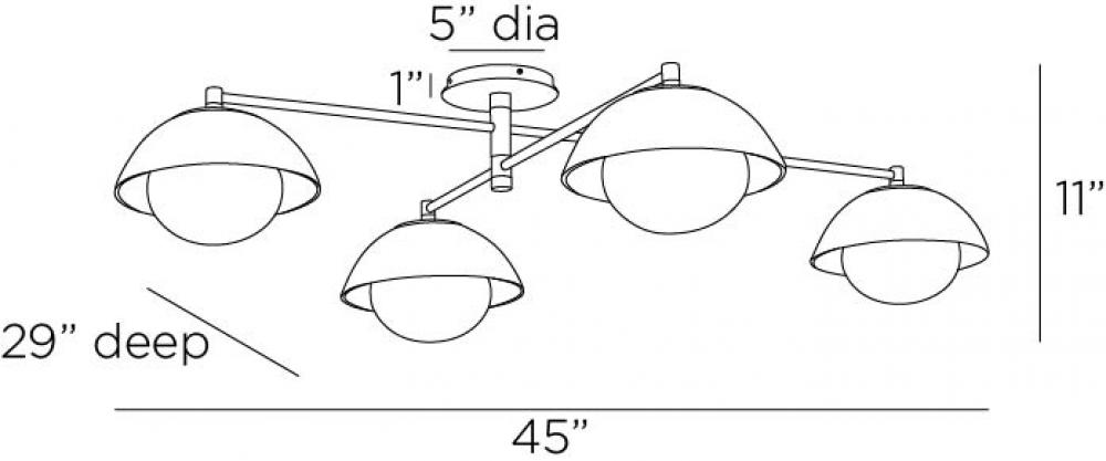 A highly flexible solution for spaces of all kinds, the Glaze multipoint flushmount features two adjustable, pivoting arms with four frosted glass lights with stained ivory crackle ceramic shades. The design offers users the ability to customize the blackened steel fixture's layout to the space, casting light where it is needed. This flushmount is an excellent option for transitional spaces like foyers and hallways, also bringing drama to areas with lower ceilings. Finish will vary.