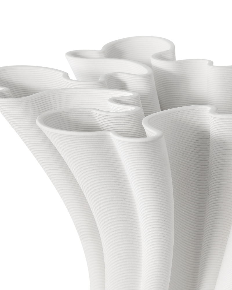 The Godet White Vase is a technological feat. The deep furrows that wrinkle around the form to create waves of movement are achieved with such a uniformity they can only be machine-made. The most surprising thing about this handsome vessel is that it is made of 3D-printed porcelain, an ancient material you might not expect to be so amenable to such a modern process.