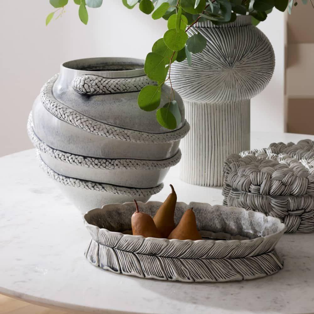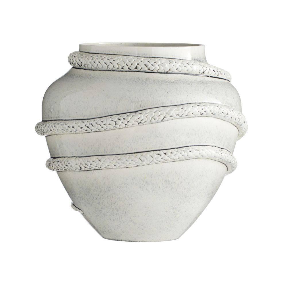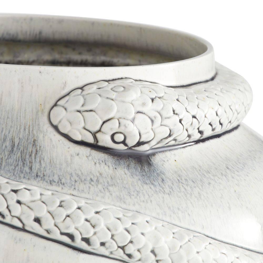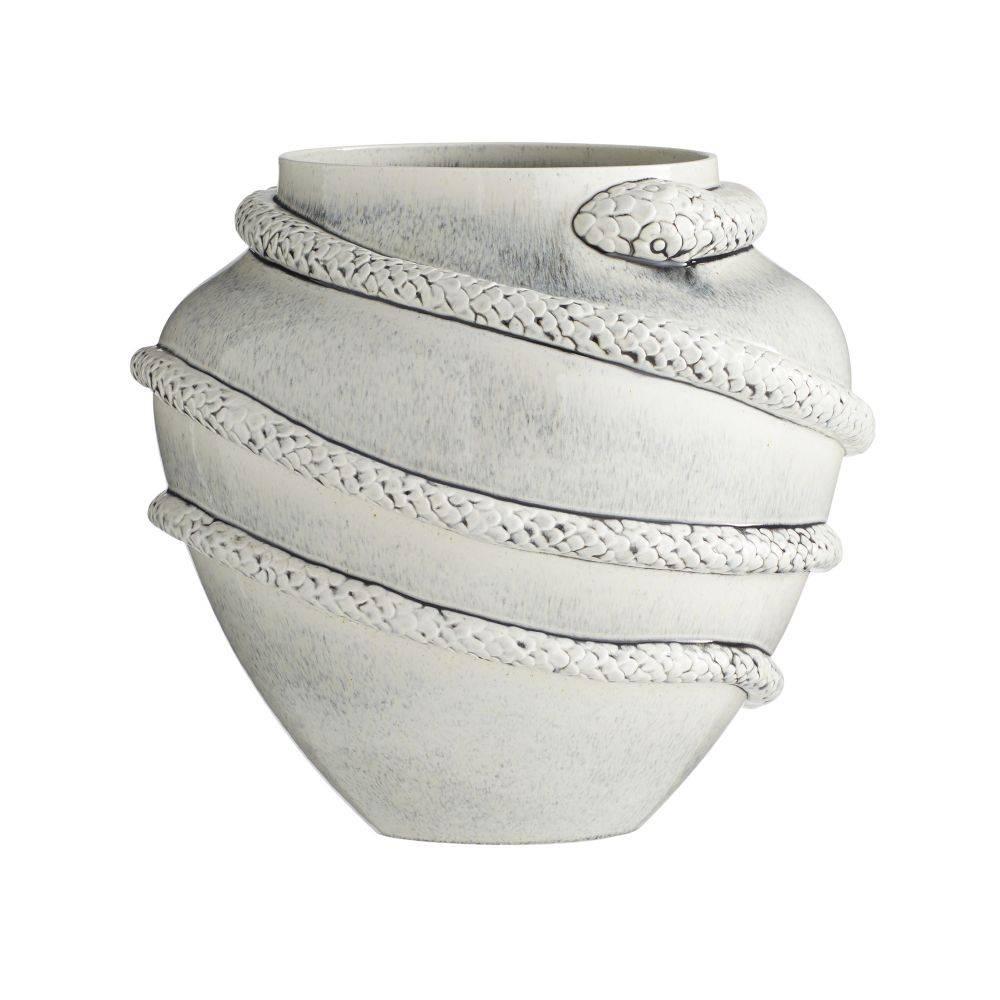 A serpentine form coils and curls around an impactfully large style. Harnessing animal energy, this porcelain vase is finished in an ice-reactive glaze, highlighting its sculptural details. Finish will vary.