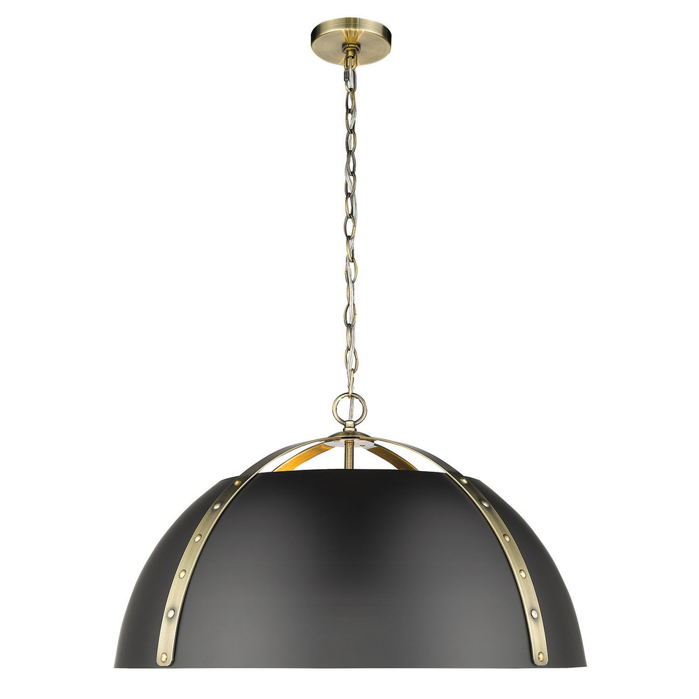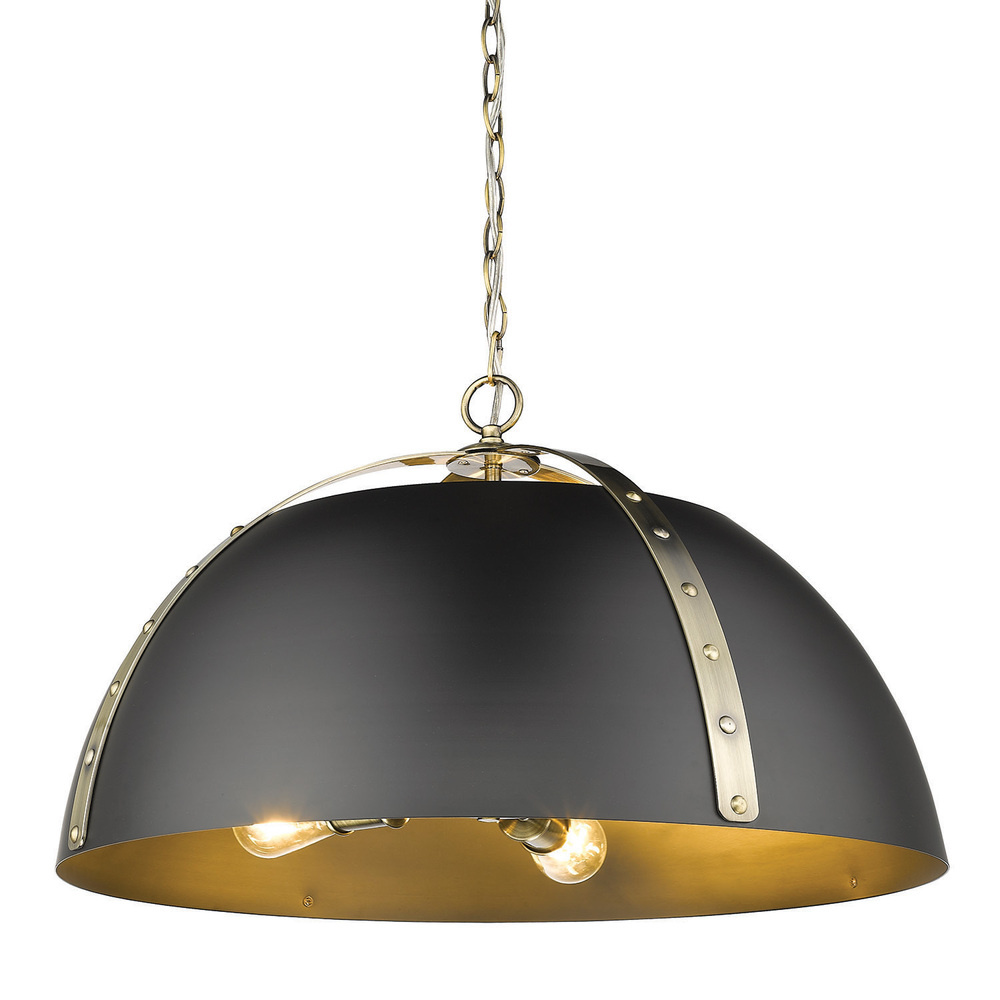 Golden 6928-3P AB-BLK - Golden Lighting Aldrich 3-light Pendant in Aged Brass