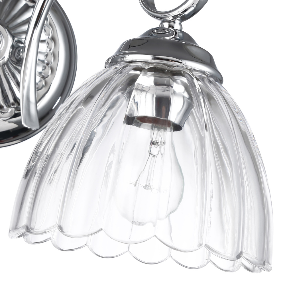 Bring glamorous elegance into your home with the Golden Lighting Audra 2-light Vanity. Featuring a glass shade and a polished Chrome frame, it creates a welcoming atmosphere. The clear glass shade offers brilliant, unobstructed light that illuminates your space beautifully. Brilliant and timeless, the Polished Chrome finish complements any décor style, offering a clean, sophisticated look. This vanity is damp location rated, suitable for bathrooms and covered spaces. Requires 2 E26 Medium base bulbs (not included), with a maximum wattage of 60 per bulb. Overall dimensions are 16"W x 9.63"H x 9.5"D. Elevate your bathroom with this sophisticated fixture that combines functionality and luxe appeal.