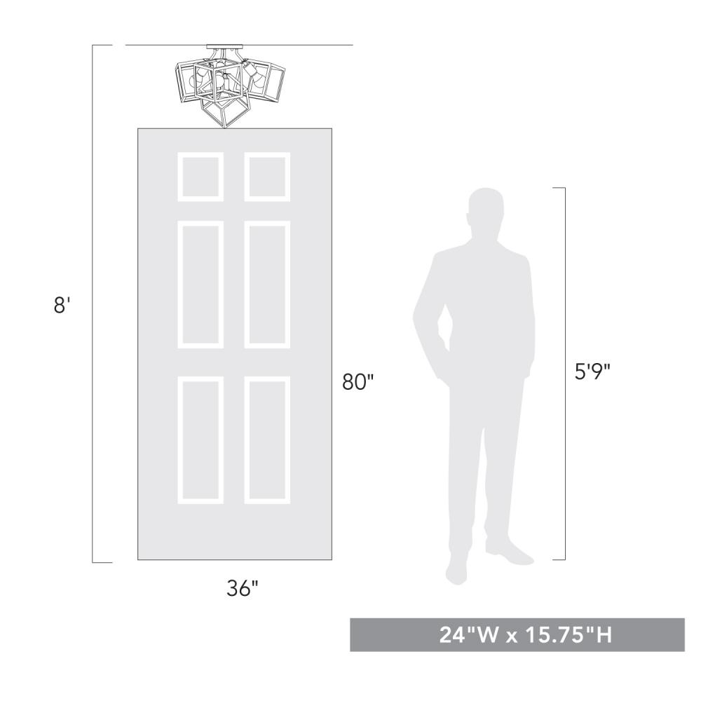 Bring industrial elegance into your home with the Golden Lighting Cassio 4-light Semi-Flush Mount in Matte Black. This semi-flush mount creates a welcoming atmosphere with its striking open-frame design and raw metal texture. In this fixture, the exposed bulbs are perfectly showcased, emphasizing its bold and authentic look. The matte black finish absorbs light, offering a smooth touch that complements various decor styles, creating an understated yet sophisticated ambiance. Ideal for a blend of style and practicality in entryways, bedrooms, kitchens, and living areas, this fixture is damp location rated, making it suitable for covered and semi-enclosed spaces such as bathrooms and laundry rooms. Overall Dimensions: 24"W x 15.75"H x 24"D, requires 4 E26 medium base bulbs (not included), with a maximum wattage of 100 per bulb. Experience quality craftsmanship and a bold design that will enhance your home’s character.