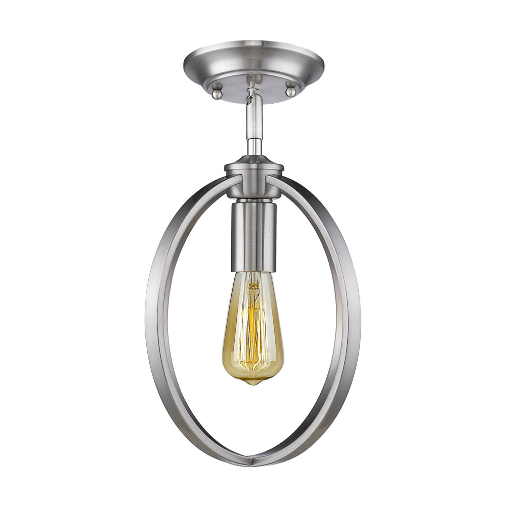 Bring transitional elegance into your home with the Golden Lighting Colson 1-light Semi-Flush Mount in Pewter. Featuring a design that omits a shade, it creates a warm atmosphere that enhances any interior. This semi-flush mount features a clean open-orb frame that beautifully complements the light, ensuring a sophisticated glow. The Pewter finish offers a soft and classic warmth, with a subtle grey hue that brings an understated charm to both classic and contemporary spaces. Its elegant satin luster gently diffuses light without glare. Perfect for entryways, bedrooms, kitchens, and living areas with mid-height ceilings, this fixture is dry location rated for ideal use in indoor areas. It’s also designed with an adjustable height feature to cater to various ceiling angles. Overall dimensions are 9.88"W x 12"H x 9.88"D, and it requires 1 E26 medium base bulb (not included) with a maximum wattage of 100. The Golden Lighting craftsmanship ensures a lasting quality, creating a statement piece that adds elegance to your home decor.