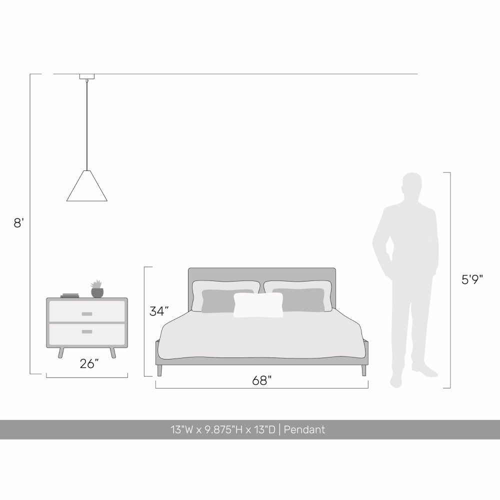 Bring modern elegance into your home with the Golden Lighting Conique 1-light 13in Pendant in Dark Walnut. Featuring a wood shade and a Dark Walnut frame, it creates a welcoming atmosphere. The wood shade highlights the genuine walnut craftsmanship, showcasing a dynamic grain pattern that adds a touch of organic warmth to your space. The smooth surface enhances the inviting glow, perfect for focused yet decorative illumination. Embrace the luxurious richness of the Dark Walnut finish, characterized by deep chocolate and warm tan browns that elevate mid-century modern design. Ideal for indoor spaces, this pendant is Dry Location Rated, making it perfect for bedrooms, living rooms, and hallways. The fixture is also Sloped-Ceiling Compatible and features an Adjustable Height from 10.875" to 130.875", allowing for installation in a variety of settings. Overall Dimensions: 13"W x 9.88"H x 13"D. Requires 1 E26 Medium base bulb (not included) with a maximum wattage of 40. Close with lifestyle appeal and quality, this pendant is a stylish statement piece that seamlessly blends form and function.