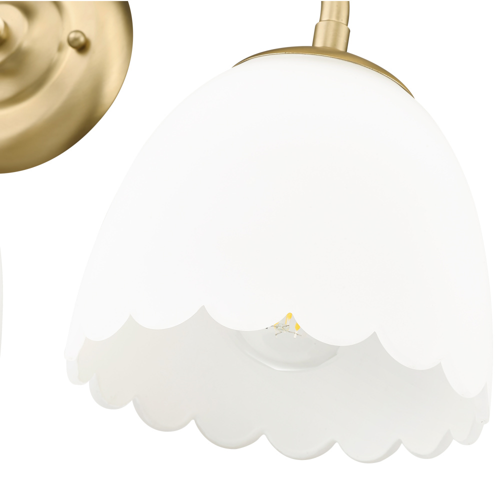 Bring traditional elegance into your home with the Golden Lighting Dorinda 3-light Vanity in Brushed Champagne Brass. Featuring a glass shade and a brushed champagne brass frame, it creates a welcoming atmosphere. The opal glass shade diffuses light evenly, delivering a soft, glare-free glow that enhances the space. The chic finish, a blend of warmth and softness, provides a touch of quiet luxury to your interior. Perfect for bathrooms, this light is damp location rated, suitable for covered and semi-enclosed spaces, like bathrooms and laundry rooms. Requires 3 E26 medium base bulbs (not included) with a maximum wattage of 100. Overall dimensions are 24.5"W x 11"H x 7.5"D. Upgrade your home with quality and stylish lighting that complements your decor.
