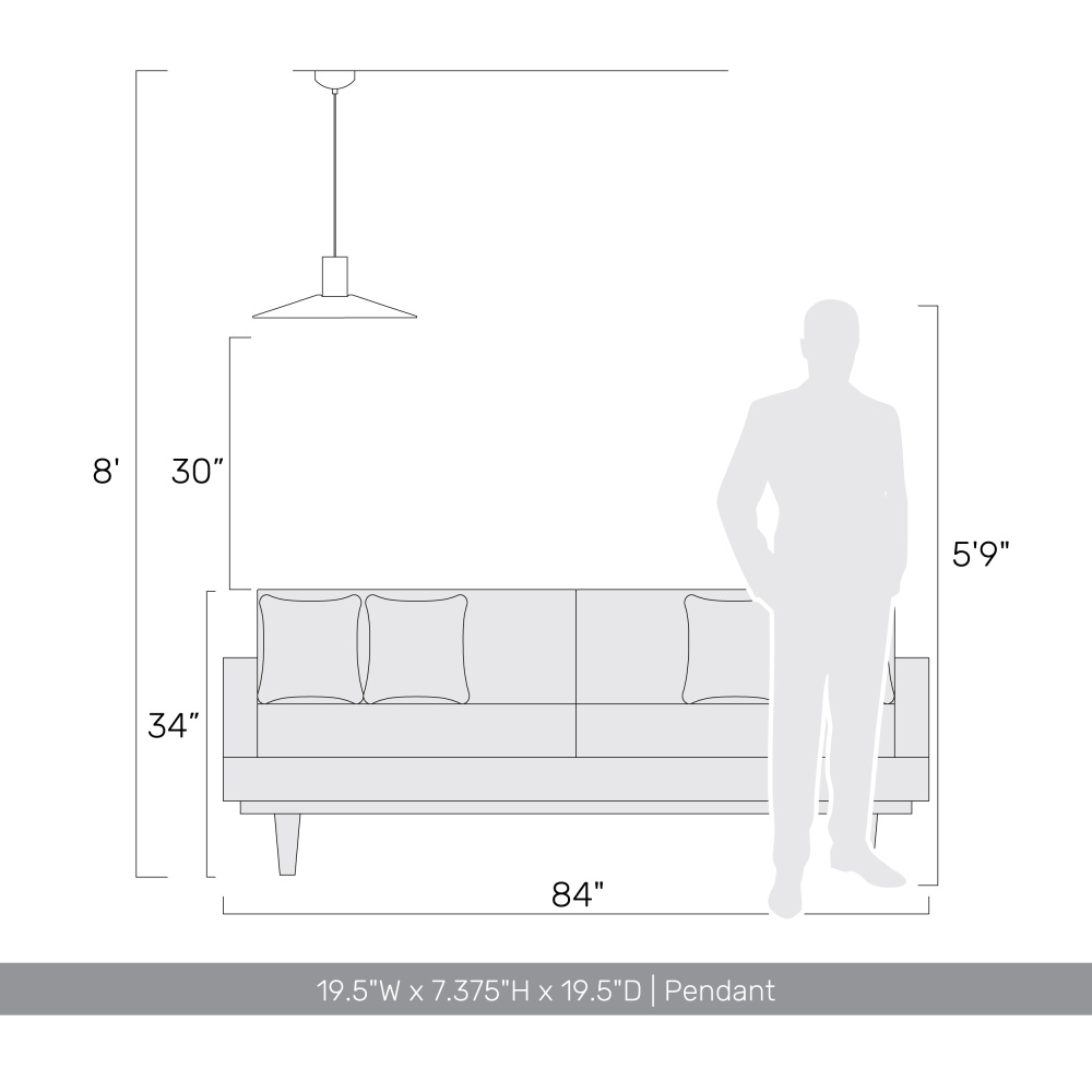 Bring modern elegance into your home with the Golden Lighting Faroe 20in Integrated LED Pendant. Featuring a felt shade and a coffee-colored frame, this fixture creates a welcoming atmosphere. The dual-toned shade includes a coffee-colored exterior and a black interior, which provides a cozy, focused light and enhanced sound-dampening properties. This rich finish adds warmth and sophistication to your modern or transitional interiors. Designed for dry locations, this pendant is adjustable in height from 9.5" to 129.5" and is ideal for areas not subject to moisture like living rooms and bedrooms. Overall dimensions are 19.5"W x 7.38"H x 19.5"D, with integrated LED technology delivering 610 rated lumens at a warm 3000K glow. Elevate your space with this exquisite blend of beautiful design and practical features.